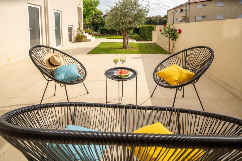 L'appartement moderne et équipé de façon moderne GARDEN est situé au rez-de-chaussée de l'immeuble et offre à ses hôtes, qui sont également les seuls hôtes de l'immeuble, des vacances dans une oasis de verdure avec un grand jardin et un grill. L'appartement dispose de 3 chambres avec un lit double, où chaque chambre dispose de sa propre salle de bain et TV, d'une cuisine entièrement équipée, d'un salon et de deux terrasses. Elle se trouve à 10 minutes du centre ville et des plages à pied. L'appartement est un point de départ idéal pour explorer les riches possibilités offertes par la destination.
