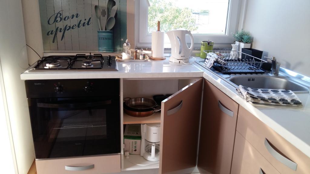 Appartement 3 pièces entièrement équipé dans un quartier calme. Grande terrasse et balcon avec vue mer. La possibilité d'utiliser le barbecue dans le jardin. Place de parking sécurisée à l'ombre.