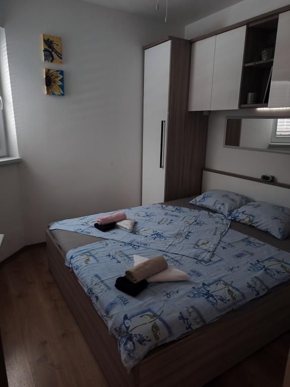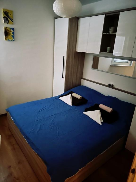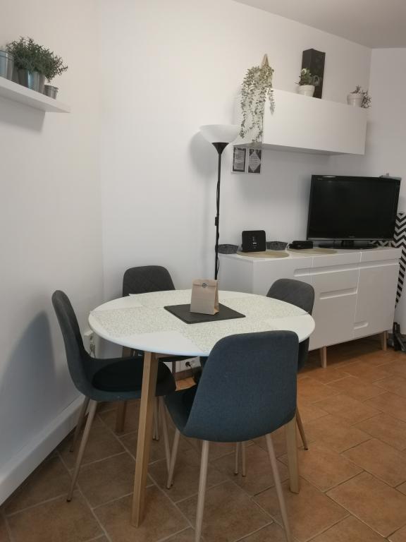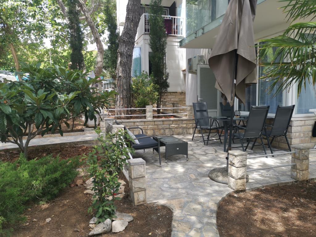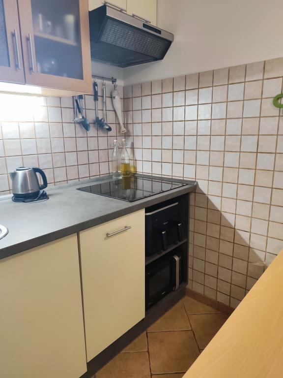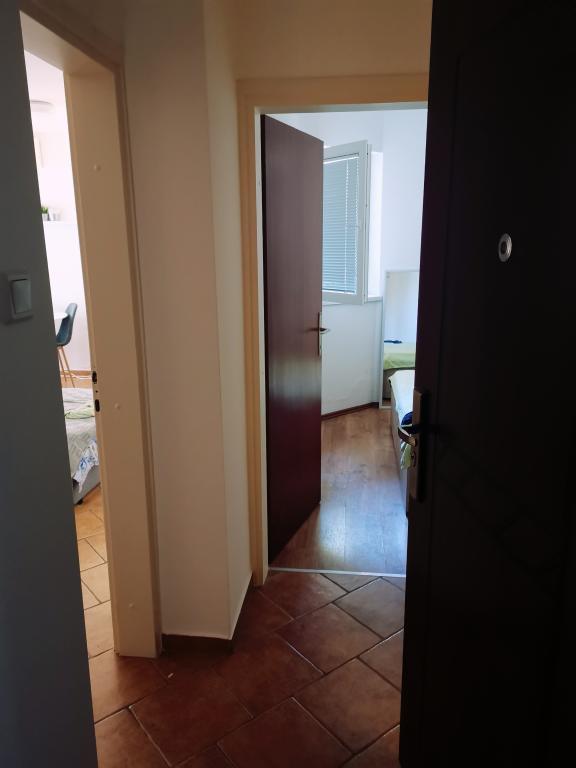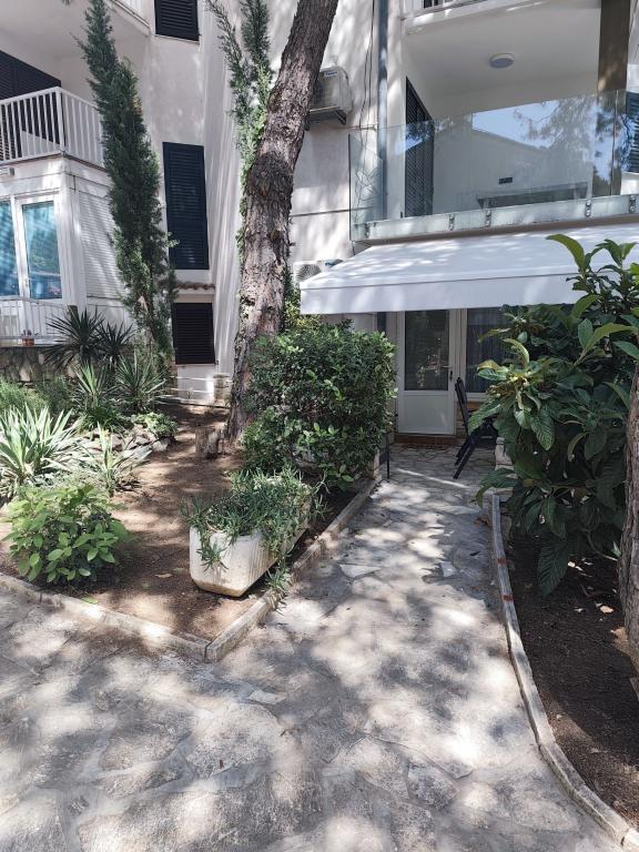 Un appartement romantique et chaleureux pour une famille, situé dans une impasse tranquille. La terrasse extérieure, avec son cadre méditerranéen pittoresque, est un véritable havre de paix pour le corps et l'esprit. L'appartement fait partie d'un immeuble dans une résidence sécurisée. Il dispose d'une magnifique terrasse de 20 mètres carrés où vous pourrez profiter de l'été, de jour comme de nuit, bercé par le chant des grillons. La terrasse est aménagée avec une table et six chaises, un salon de jardin confortable et un barbecue (bois ou charbon). L'intérieur comprend une chambre avec un lit double, une loggia avec un lit de 160 x 200 cm et, si besoin, un lit bébé. La salle de bain est équipée d'une cabine de douche et de tous les accessoires nécessaires. Un petit couloir mène à la pièce de vie ouverte comprenant un coin repas et une cuisine. La cuisine est entièrement équipée (lave-vaisselle, lave-linge, chauffe-eau, réfrigérateur-congélateur, four à micro-ondes, mixeur plongeant et classique, friteuse à air chaud). Un premier couchage d'appoint peut être aménagé en canapé deux places devant la télévision. Plusieurs placards sont à disposition. La table à manger est composée de quatre chaises et de deux chaises supplémentaires.