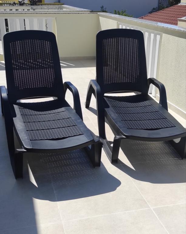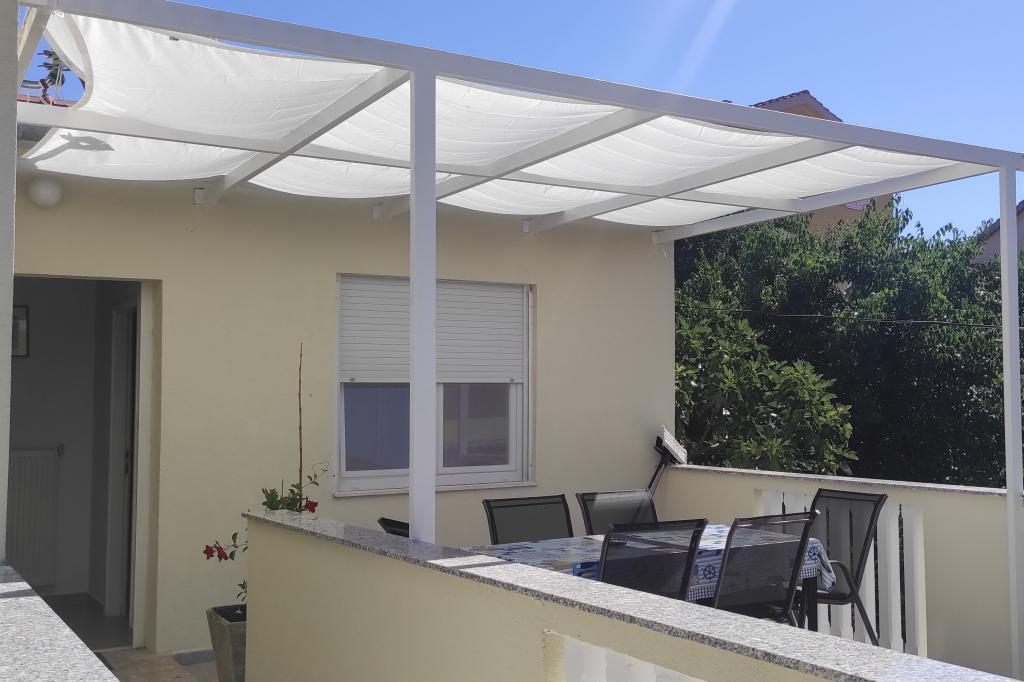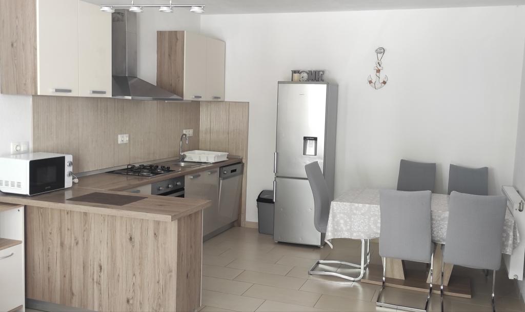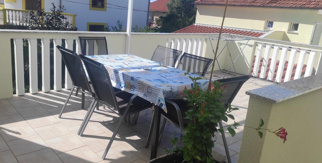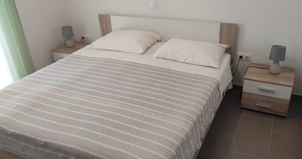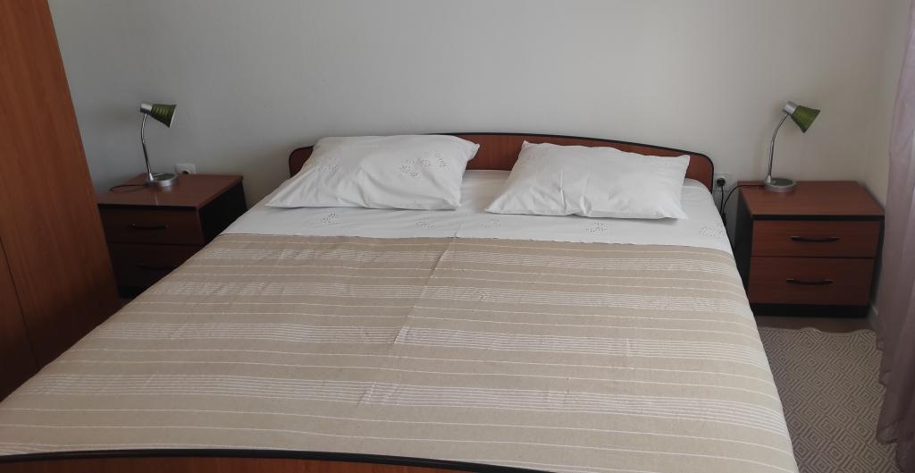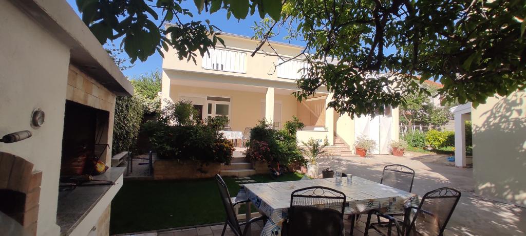La maison familiale composée de deux appartements entièrement équipés est située dans un quartier calme de la ville, non loin du centre (2 min à pied) et de la plage (3 min à pied). Le bâtiment est entouré d'un grand jardin avec beaucoup de verdure et d'ombre, et il est en retrait de la route, ce qui, en plus du calme, procure également un sentiment de sécurité. Il y a aussi un grand parking privé devant, et une pelouse propice pour jouer. L'appartement A2+2 est situé au rez-de-chaussée de la maison et se compose d'une chambre, cuisine, salle à manger, salon avec canapé-lit et salle de bain. Il y a une grande terrasse couverte devant. L'appartement A4+2 est situé au premier étage et se compose de deux chambres, une cuisine, une salle à manger, un salon avec canapé-lit et une salle de bain. Il y a deux grandes terrasses couvertes devant. Tous les clients peuvent utiliser le grill dans la cour. Les hôtes sont sympathiques et arrangeants.