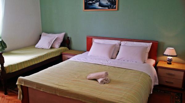 Passez des vacances inoubliables au cœur de la Dalmatie ! Nos appartements Ante, situés au 1er étage d'une maison familiale, se trouvent à seulement 6-7 minutes à pied du centre de Pakoštane et de sa magnifique plage. Ils sont parfaits pour un séjour paisible et agréable en bord de mer. Appartement Ante : • Capacité : 2 adultes + 2 enfants • Comprend un séjour avec cuisine et coin repas, une chambre, une salle de bains et une terrasse couverte • Climatisation et canapé-lit confortable. Chambre Petra : • Capacité : 2 adultes + 1 enfant • Lit double + lit simple • Accès par un couloir, une salle de bains et une terrasse • Climatisation. Les occupants de la chambre Petra ont accès à la cuisine d'été au rez-de-chaussée.