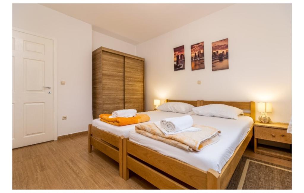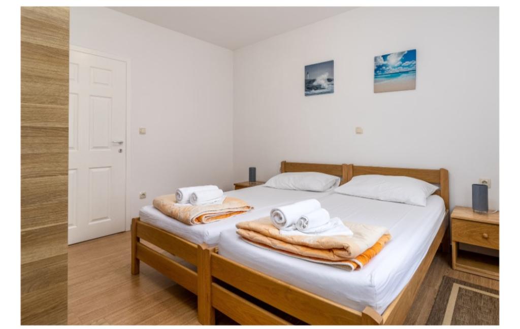 Cuka appartements sont situés dans un quartier calme de Pakostane, entouré de pins, à environ. 150 mètres de la mer. Les appartements sont nouvellement construits 2014 années. Ils sont équipés d'un lave-vaisselle, télévision par satellite LCD, literie, serviettes, climatisation, wi-fi, cuisinière, bouilloire, grille-pain. Le parking est situé dans la cour, qui mesure 800 m2 dans lequel il ya une possibilité de barbecue. Center, boutique, banque, restaurants et autres établissements de restauration et touristiques sont situés à 5 minutes à pied de la maison Cuka
