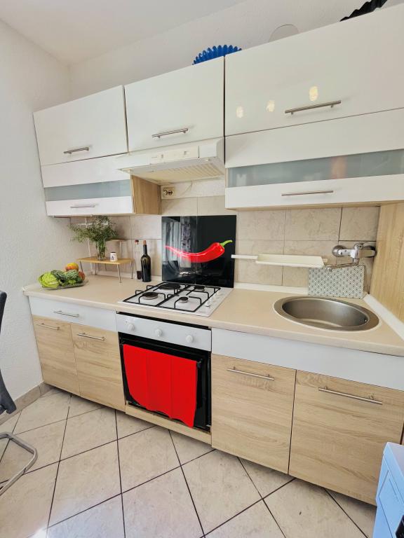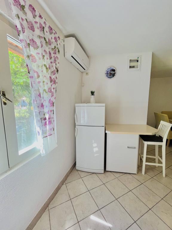 Les appartements Danijela sont situés à proximité de la jolie station balnéaire de Pine Beach et du camping Adria-Kozarica. Nos hôtes sont le plus souvent des familles avec de jeunes enfants. car nous sommes situés dans une rue calme sans bruit et sans circulation. La rue est un peu plus étroite à l'entrée et non pavée, mais courte... et nous avons un parking gratuit devant la maison. Nous n'avons pas de vue sur la mer. La première plage est à environ 300 m en passant par le camping Kozarica, et les autres plages sont à environ 500-1000 m. Nous louons 2 appartements au premier étage de la maison. qui est aussi le dernier. Chaque appartement dispose de 2 chambres, d'une cuisine avec salon, d'une salle de bain avec douche et d'un petit balcon avec auvent. La cuisine dispose d'une plaque de cuisson électrique, d'ustensiles de cuisine complets, d'un lave-vaisselle, d'un réfrigérateur avec grand congélateur, d'un lave-linge. Fer, planche à repasser, sèche-cheveux et serviettes sont fournis, ainsi que tout le linge de maison. L'appartement Riba dispose de matelas de très haute qualité (neufs) pour votre meilleure nuit de repos. Les autres lits ont des surmatelas de qualité et des matelas qui ont 2 à 3 ans, selon le lit.