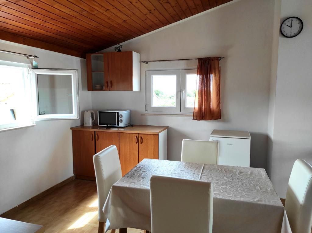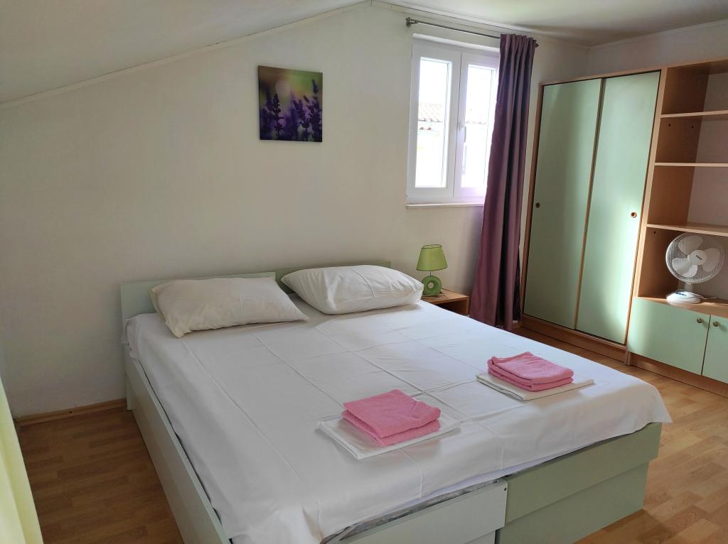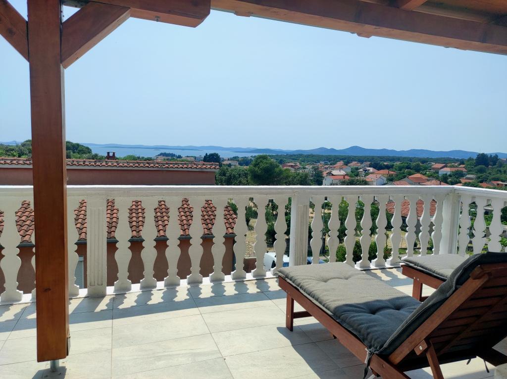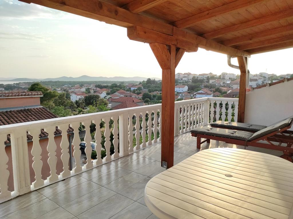 La maison familiale dans laquelle se trouve l'appartement est située à 600 m de la mer, c'est-à-dire du centre-ville. Il se trouve à 500 m du lac Vrana, il est entouré de verdure et peut offrir à chaque client des vacances paisibles et agréables. L'appartement fait 100 m2. Il se compose de 2 chambres doubles, d'un séjour avec un lit gigogne, d'une cuisine, d'une salle de bain et d'une grande terrasse de 30 m2. Il est situé au deuxième étage de la maison et dispose d'une entrée indépendante. L'appartement offre une belle vue sur la mer, la ville, le lac et le lointain Velebit. Les clients peuvent utiliser l'espace extérieur au rez-de-chaussée ainsi que le barbecue. Les places de parking sont situées dans la cour. Veuillez nous contacter par e-mail, car nous pourrons ainsi vous fournir toutes les informations rapidement et en détail.