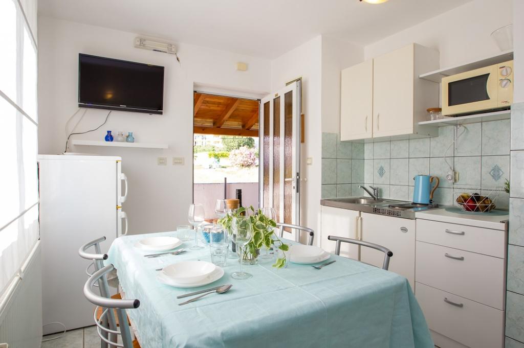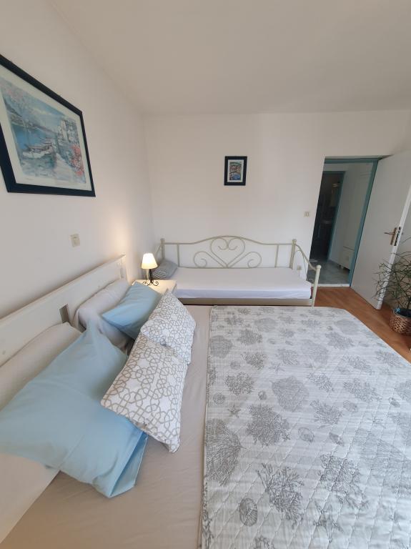 Super vacances Très bon et bon hébergement, une grande terrasse avec une table et des chaises et un transat, où le store pourrait être utilisé, des chambres équipées de la climatisation. L'emplacement de l'hébergement était bien marqué, la maison dispose d'un grand parking pour 4 voitures. Selon les photos sur Internet, l’équipement de la chambre était accompagné de plusieurs nouvelles photos du propriétaire avec de nouveaux équipements de salle (studios). Le studio est idéal pour une famille avec 2 enfants, il y a un lit double pour 2 personnes. L'ameublement avec d'autres meubles est bon, l'équipement de cuisine est équipé d'appareils et le mobilier est exactement comme sur les photos, la vaisselle suffit pour une famille de 4 personnes, il y a tout ce dont vous avez besoin. Près de la maison se trouve une boulangerie et une variété de ventes de fruits et légumes. Très bons propriétaires, sympathique et serviable, très bon accord. A quelques pas de la plage. Le soir et la nuit Nous avons aimé nos vacances, nous le recommandons. Nous avons également loué d'autres studios - 2 + 2 et 3 + 1, même ceux-là étaient bien, au studio 3 + 1, il y a une séance parfaitement couverte (pergola) pour un problème assis d'environ 10 personnes. À quelques pas de la maison (environ 200 m) commence le centre-ville avec de bons restaurants et magasins. Les plages sont pierreuses - gravier et béton minuscules.