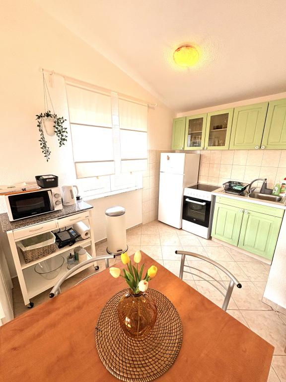 Je recommande fortement l'appartement à IVANA! Propre, bien équipée, vue magnifique sur la mer. La plage est à 200 mètres de la plage. Tout ressemble exactement à ce qu'il a présenté dans les images. Une immense terrasse avec une table pour 4 personnes, un lit de repos, un sèche-linge. La cuisine est équipée de tous les accessoires nécessaires. Le gentil propriétaire accueille toujours les clients avec de superbes figues ou de la pastèque. Nous lui avons rendu visite pour la deuxième fois et nous reviendrons certainement vers elle. IVANA! Salutations et merci.