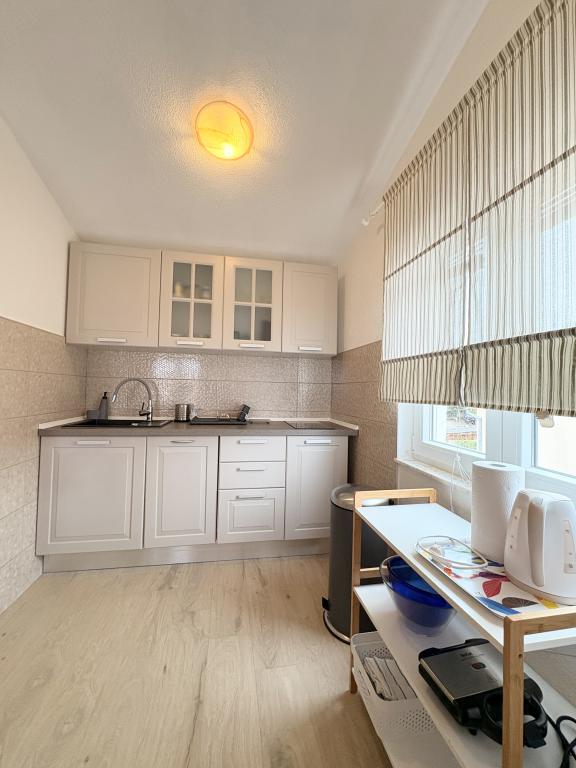 Maison avec des appartements est situé à proximité de la mer et la ville. Seulement cinq minutes à pied de la plage et offre également la paix et la vie privée. En face de la maison il ya un parking pour chaque véhicule et sont protégés du soleil. Le jardin est une grille qui peut toujours être utilisé. Chaque appartement a sa propre entrée. Grands balcons orientés au sud avec vue sur la mer.