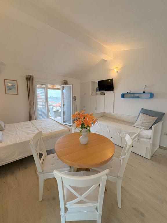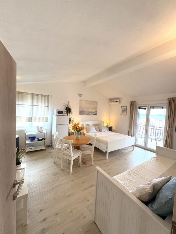 Nous étions dans ces appartements chez Ivana cette année. Nous avons eu la chance de vivre dans 2 appartements en haut. Appartements très agréables, décorés avec goût, propres, tout ce dont vous avez besoin. Superbe vue depuis le balcon, super balskon ! Peut-être à 80 mètres de la plage, mais aussi à proximité du centre. Le propriétaire d'Ivan, une personne très gentille et très positive ! Nous évaluons ce séjour très positivement et peut-être y reviendrons-nous un jour. Je le recommande à tout le monde !