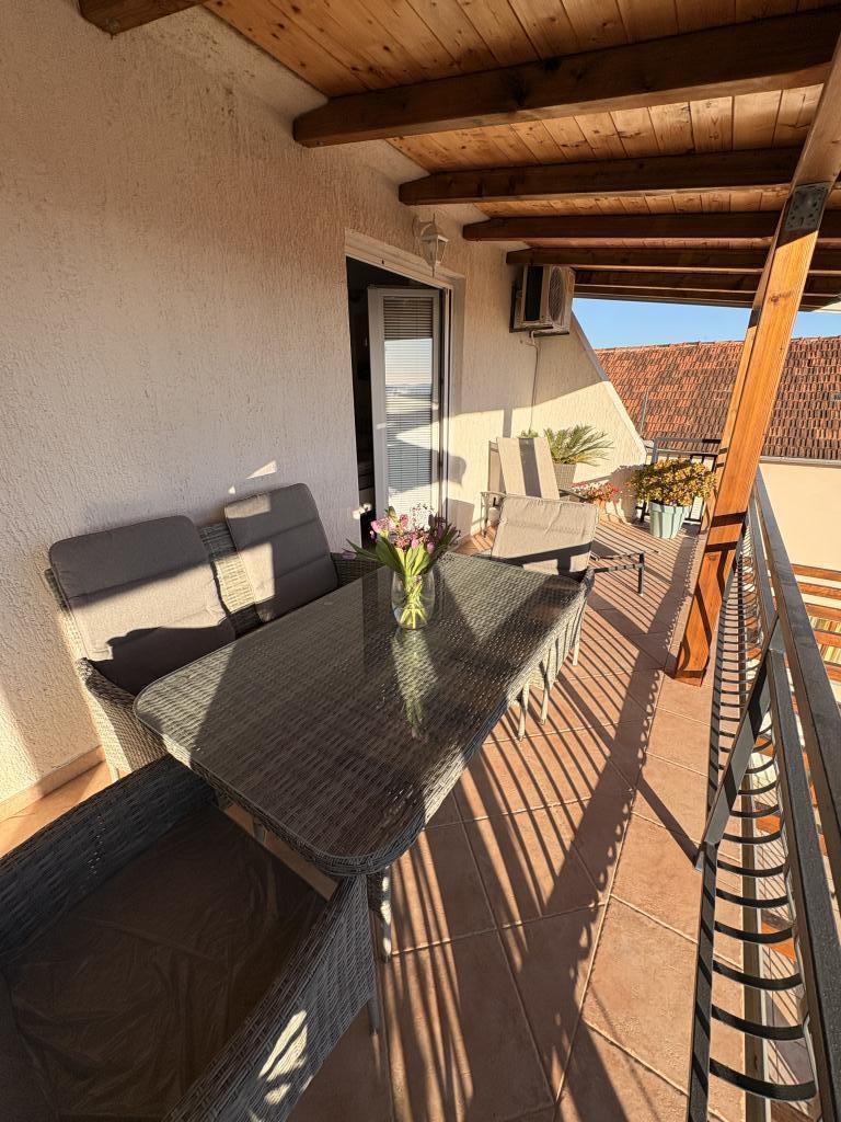 Emplacement idéal, superbe appartement. Il a une vue sur la mer depuis la terrasse. A 2 min à pied de la plage, 3 min du centre ville, le parking se fait devant l'appartement à l'ombre sous la verrière. L'hôtesse (Ivana) est une personne formidable, gentille, bienveillante, toujours prête à aider. La plupart du temps, tout va bien. On reviendra certainement.