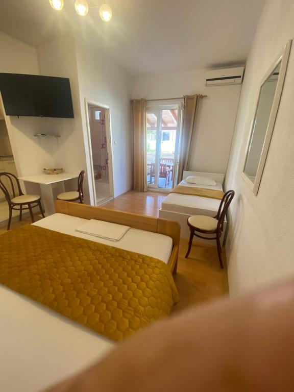 Les appartements Jasa sont situés dans une rue calme, en deuxième ligne de mer, à seulement 150 m des plages de Janice et Punta et à proximité du centre-ville : tout est accessible à pied. Le petit supermarché Studenac se trouve à 50 m et la boulangerie à 150 m. Un parking est mis à la disposition de tous les clients dans la cour. La ville de Pakoštane offre de magnifiques plages et une mer idéale pour la baignade et les promenades, ainsi que de nombreuses commodités en saison. À proximité, vous trouverez des restaurants, des boutiques et des services de proximité. Vous pourrez également pratiquer le vélo, les sports nautiques ou faire des excursions au parc national de Kornati et au lac de Vrana. Pour plus d'informations ou pour réserver, veuillez nous contacter ! La liste des prix pour la saison 2026 est à jour.