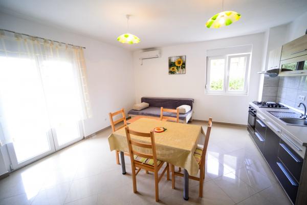La maison avec appartements est située à proximité immédiate de la mer. Il offre calme et intimité. A chaque étage se trouvent deux appartements de 60m² et 65m². Ils contiennent une chambre avec un grand lit double (matelas confortables de 23 cm d'épaisseur), une cuisine, un salon avec un grand lit et une salle de bain avec douche. Ils sont équipés de tout ce dont un appartement moderne a besoin pour offrir au client un séjour des plus confortables. Derrière la maison, il y a des places de parking couvertes sécurisées pour chaque véhicule. Le barbecue extérieur est accessible à tous. Veuillez nous contacter par e-mail, car nous pourrons ainsi vous fournir toutes les informations rapidement et en détail.
