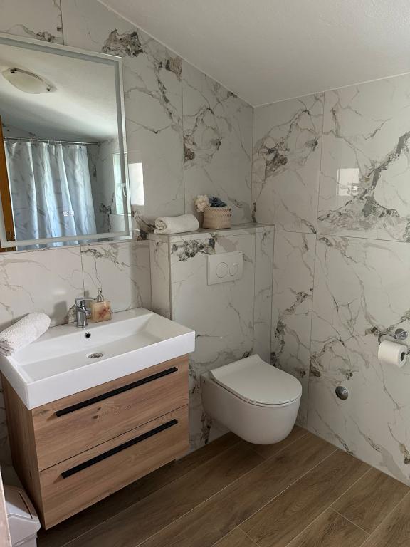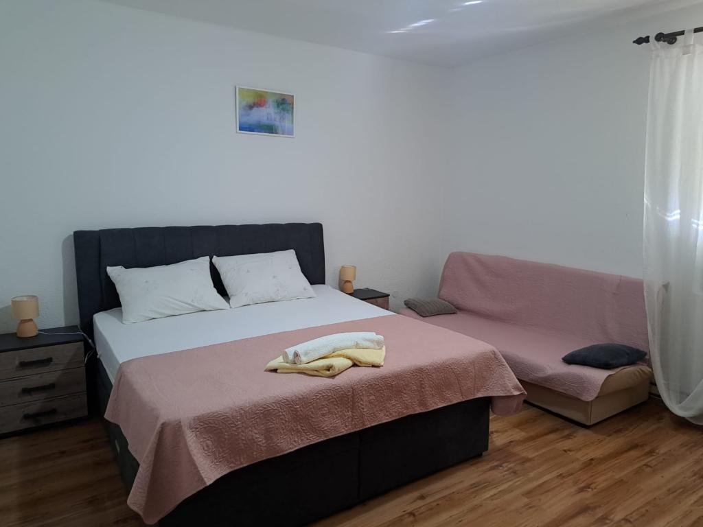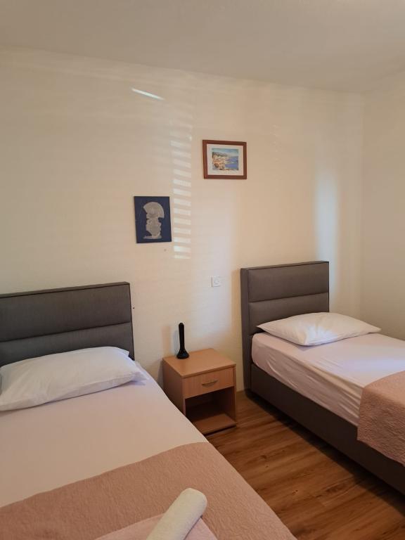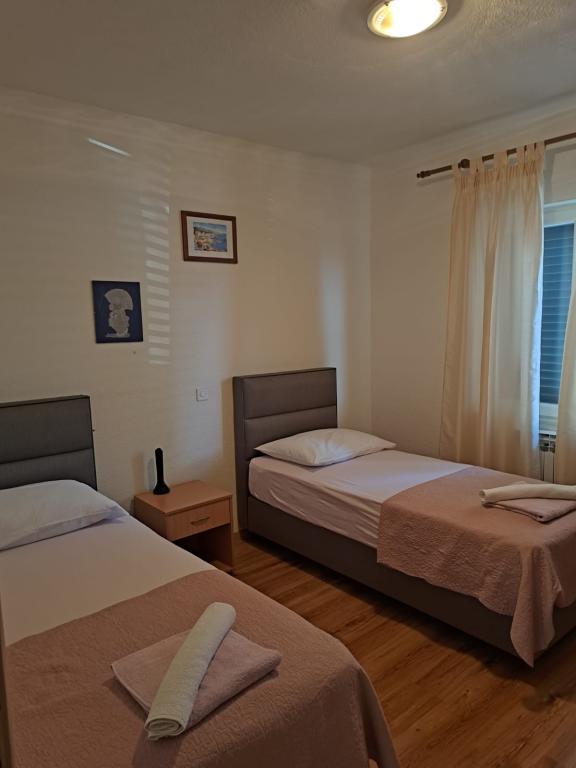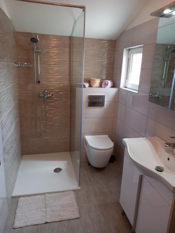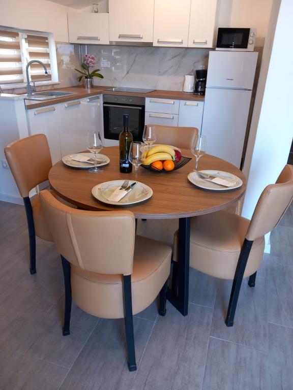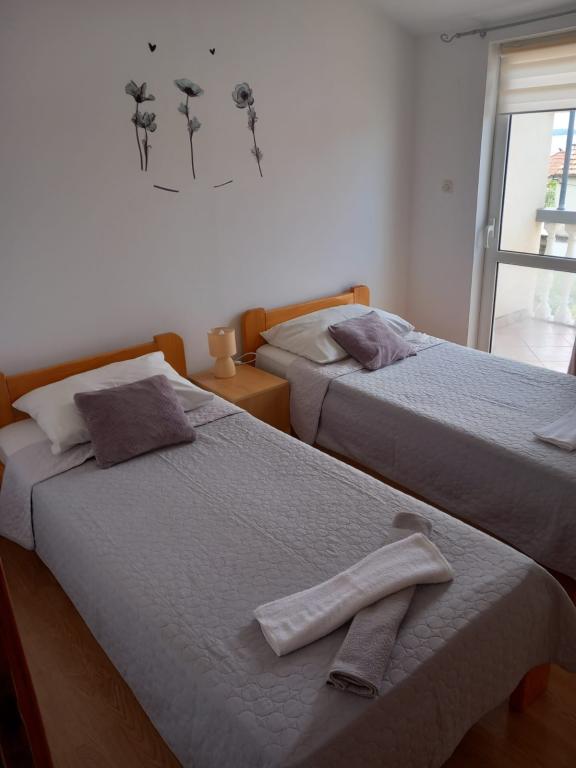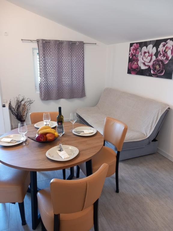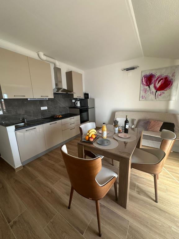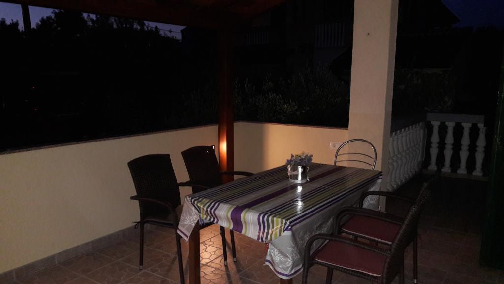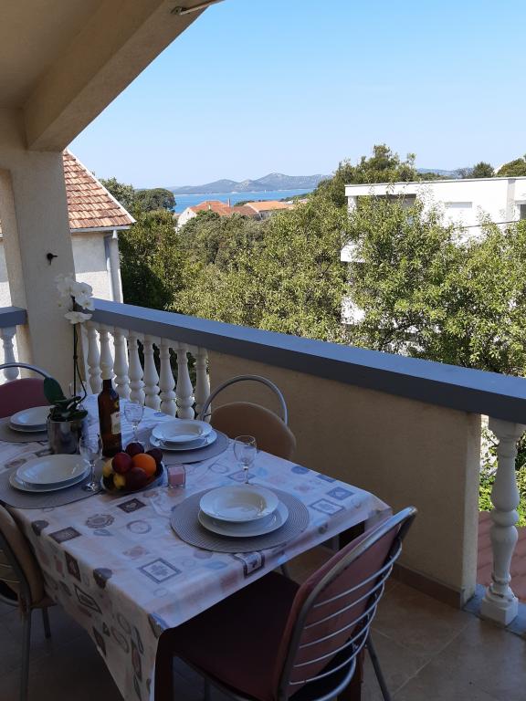 Appartements Krpeta sont situés dans un quartier calme de Pakoštana.U Nous offrons deux appartements avec de grandes terrasses surplombant la disposition Jardin more.Na avec parking et barbecue.