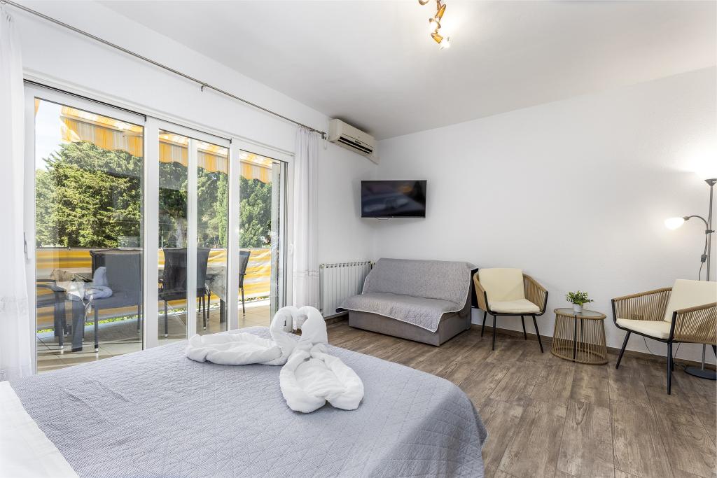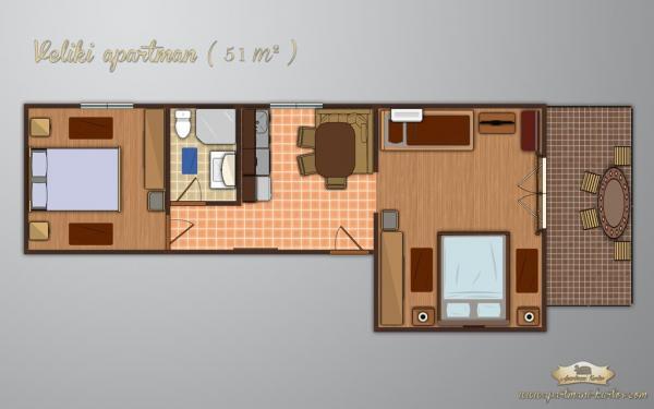 Kurtov appartements sont situés à lentrée de Pakostan, situé dans la forêt de pins qui fournit notre appartement calme et agréable atmosphère et beaucoup dombre. Si votre teinte naturelle ne suffit pas, nos appartements sont équipés avec air conditionné. La plage est à environ 10 minutes à pied ainsi que pour le centre-ville et le magasin le plus proche et le restaurant est à seulement 5 minutes de chez nous. La cour est un parking et dun barbecue. Plus dinformations sur notre site web.