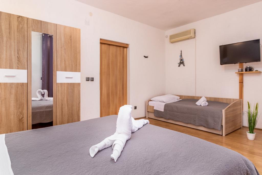 En savoir plus Unités d'hébergementLa réservation est de 100 €, et les appartements sont payés le jour de Dol (Euros ou Kuna).