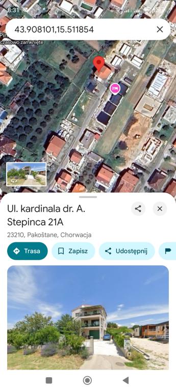 L'appartement est agréable, propre et spacieuse. Nous avons été particulièrement impressionnés par une grande terrasse avec une belle vue sur la mer, les îles et le centre avec l'église. L'appartement est situé dans une proximité de la plage et du centre de Pakostane. La place de parking est couvert et grande. Pakoštane est une base idéale à partir de laquelle vous pouvez faire des excursions à Zadar, Sibenik, Kornati, Krka, etc. La fête était magnifique et les hôtes étaient très chaleureux et sympathique. Nous sommes impatients d'y retourner l'année prochaine!