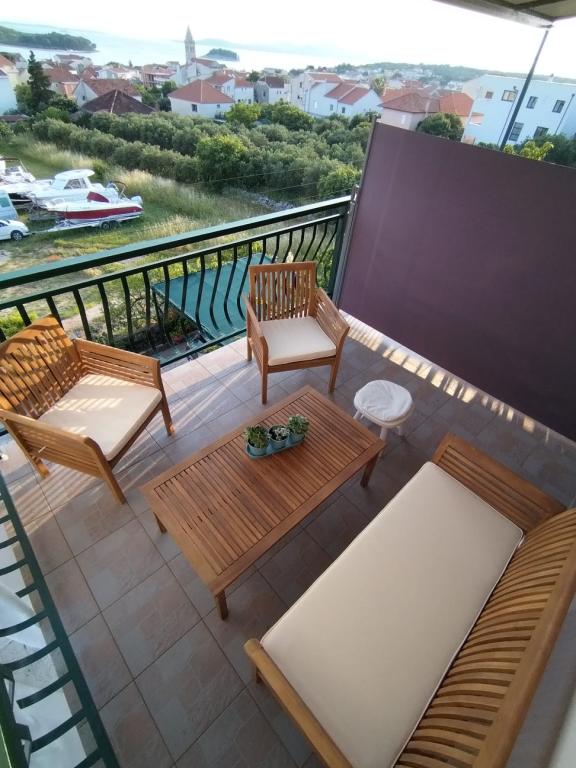 Taxe de sejour est inclus dans le prix.Emplacement magnifique et calme, à proximité immédiate de la plage et du centre. L'appartement est très bien équipé et bien rangé. La terrasse offre une vue imprenable et magnifique sur les îles et îlots environnants ainsi que sur la ville. Les hôtes sont très accueillants et sympathiques, et vous pourrez également acheter des produits locaux. Nous nous sommes sentis très à l'aise et nous reviendrons certainement !