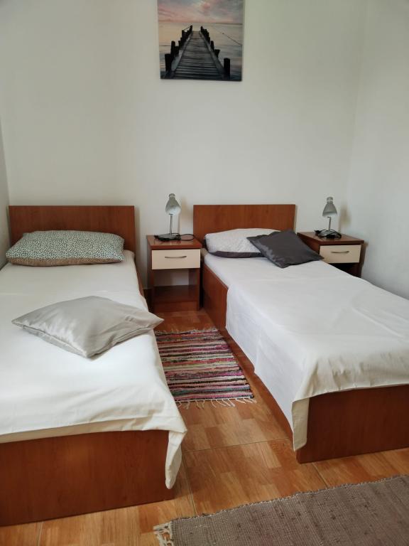 Les appartements Lucia sont parfaits pour deux familles avec enfants. Situés dans un quartier calme de Pakoštane, ils se trouvent à 2-3 minutes à pied de la plage. Les appartements disposent d'un balcon partagé avec vue sur la mer et d'un réfrigérateur avec congélateur. Un parking est disponible sur place. Un acompte est demandé lors de la réservation, le solde étant à régler à l'arrivée. Seules les personnes mentionnées dans la réservation sont autorisées dans l'appartement. Une laverie automatique est disponible à Pakoštane, près de la mairie.