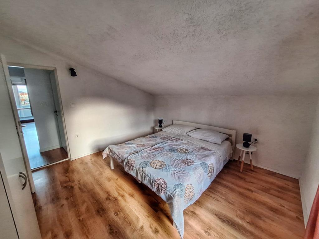 La maison est située dans le centre de Pakoštan. Il se trouve à quelques minutes à pied du centre-ville et de la plage. Il y a deux appartements de 50 m2 dans la maison et ils sont situés au premier étage de la maison. L'appartement se compose d'une cuisine avec salle à manger, d'une chambre et d'une salle de bain. La chambre a un lit double et un lit d'appoint, ainsi qu'un autre lit d'appoint dans la cuisine/salon. La cuisine est équipée d'appareils de cuisine de base et d'ustensiles de cuisine de base. Il y a une place de parking dans la cour de la maison (à l'abri du soleil). Le Wi-Fi est inclus dans le prix de l'hébergement !