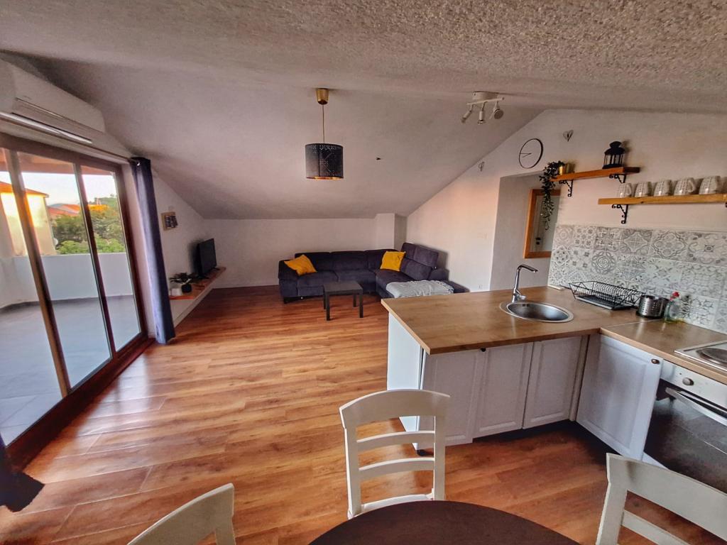 Très grand appartement, grande terrasse, tout ce dont vous avez besoin dans la cuisine, horaires très flexibles pour l'arrivée et le départ, super contact, très proche de la mer et des commerces.