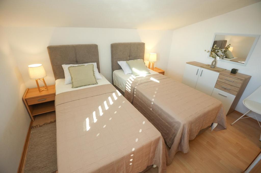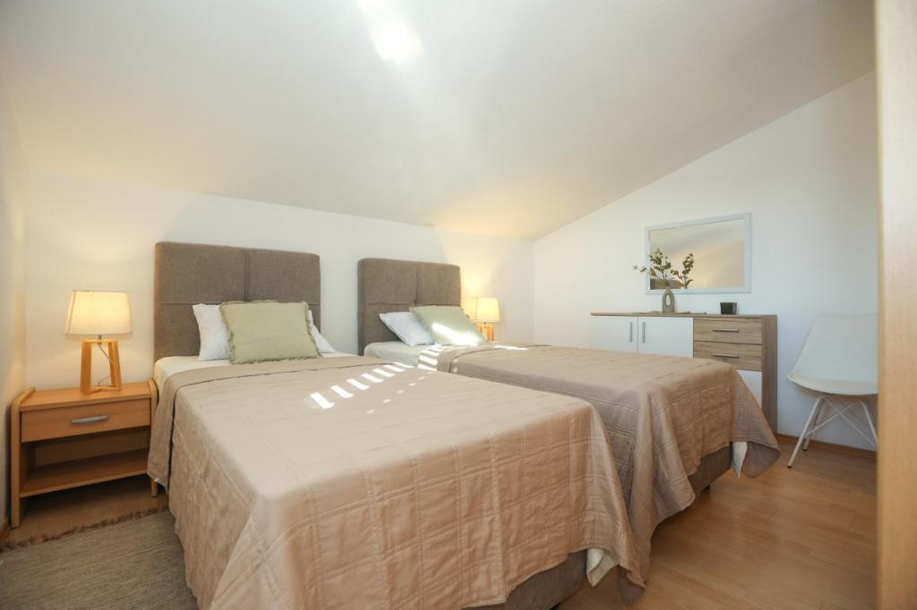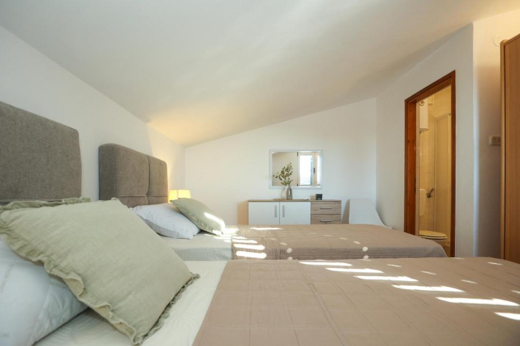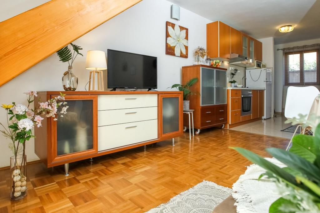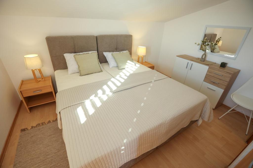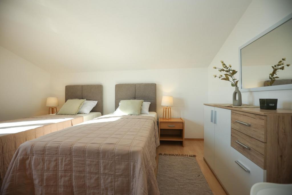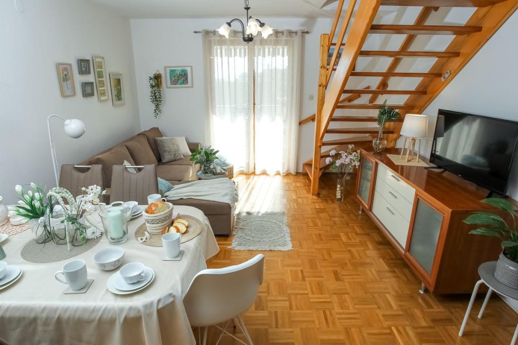 Notre établissement offre une atmosphère chaleureuse et conviviale où vous vous sentirez immédiatement à l'aise et accueillis chaleureusement. Idéalement situé à seulement 400 mètres du centre-ville, il bénéficie d'un emplacement privilégié, à proximité immédiate de toutes les commodités – le magasin le plus proche se trouve à seulement 30 mètres. La maison se compose de trois appartements, chacun doté d'un balcon privé où vous pourrez savourer votre café du matin ou passer d'agréables soirées. Le plus grand appartement dispose en outre de trois terrasses spacieuses, offrant encore plus d'espace pour profiter du plein air et partager des moments conviviaux. Vous aurez également accès à un espace extérieur commun comprenant une véranda vitrée avec cuisine d'été, une cheminée intérieure et une grande table idéale pour se retrouver et prendre ses repas en plein air. Cet espace chaleureux et confortable, niché au cœur d'un écrin de verdure, offre un cadre paisible propice à la détente, aux échanges et à la création de souvenirs inoubliables. L'hébergement convient à différents types de voyageurs et est particulièrement adapté aux familles avec enfants, qui pourront jouer en toute sécurité dans un environnement spacieux. Chaque appartement dispose également d'une place de parking extérieure privative, pour un séjour des plus agréables et sans souci. En tant qu'hôtes, nous sommes toujours disponibles pour vous donner des conseils, des recommandations ou vous aider à organiser votre séjour - nous voulons que vous vous sentiez comme chez vous et que vous ne gardiez que de beaux souvenirs de Pakoštane.