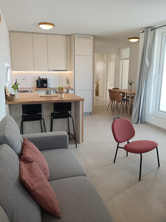 Bel emplacement dans un quartier calme, proche de la plage et du centre. L'appartement est propre, décorée avec goût avec tous les accessoires nécessaires. Très pratique et confortable. Grande contact avec les propriétaires.