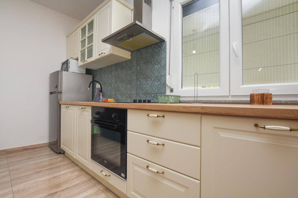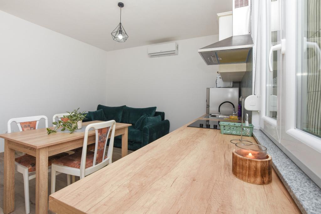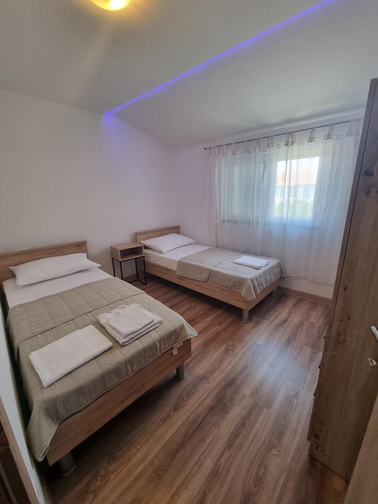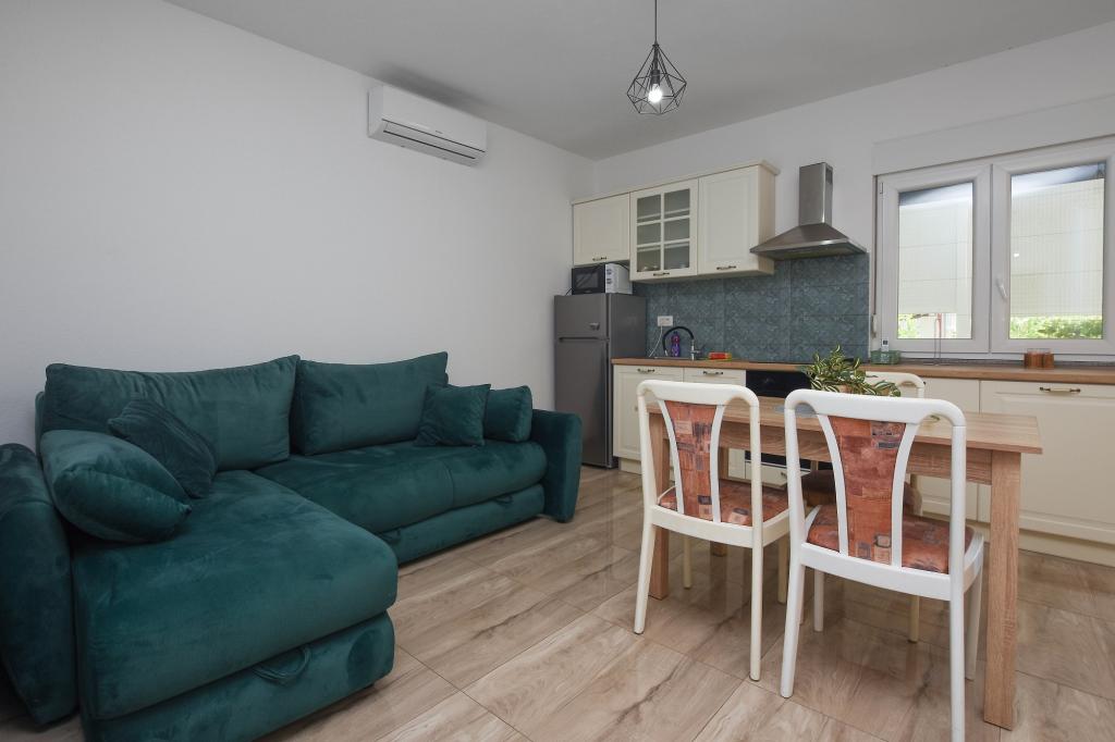 Appartements récemment rénovés situés dans une rue calme, à 5 minutes à pied de la première plage. Le magasin est à 20 mètres de la maison. Le médecin et le premier restaurant sont à 2 minutes à pied. Dans le plus petit appartement, il y a une chambre avec un grand lit double pour 2 personnes, une salle de bain avec cabine de douche, ainsi qu'une cuisine et un salon. Dans le salon il y a un canapé-lit pouvant accueillir deux personnes supplémentaires. L'appartement dispose également d'une petite terrasse. Le grand appartement dispose de 2 chambres, 2 salles de bains avec cabines de douche, 2 balcons avec sièges et vue sur la mer.