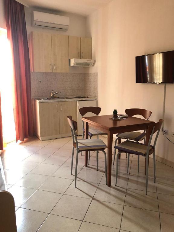 Appartements au centre de la ville, non loin de la plage. Chaque appartement possède son propre balcon, avec vue sur la mer ou sur le parc. Appartements : rez-de-chaussée, premier et deuxième étage. L'appartement comprend une place de parking gratuite. Si vous avez besoin d'informations, les hôtes sont toujours disponibles. L'appartement est équipé de : climatisation, wifi, TV, linge de lit. Non inclus : serviettes, micro-ondes, four.