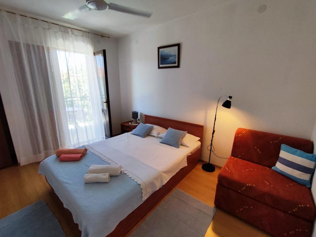 La maison familiale est située dans un endroit calme à proximité des plages et du centre ville. Elle propose un hébergement confortable dans un appartement pour 4 à 5 personnes et un studio pour 2 personnes et un enfant (jusqu'à 12 ans). Il est situé à quelques minutes à pied du centre ville et des plages. Dans une ambiance agréable, vous pourrez passer vos vacances en famille ou en couple, en profitant des soirées d'été sur les balcons et le magnifique jardin.