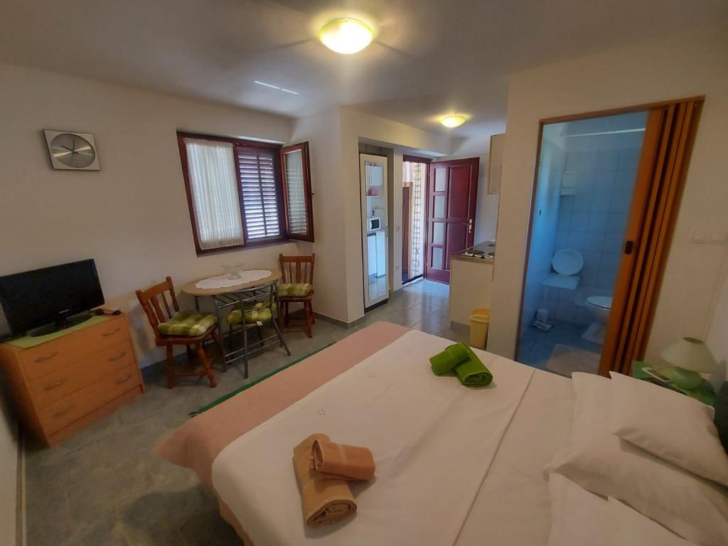 En savoir plus Unités d'hébergementPour confirmer la réservation, un acompte d'un montant de 2 nuits est requis. Le reste est payé à l'arrivée à l'appartement (en espèces). La taxe de séjour et l'utilisation de la climatisation sont incluses dans le prix. L'heure d'arrivée idéale est après 14h00 et l'heure de départ est au plus tard à 10h00. Il est possible, sur accord, d'entrer dans l'appartement plus tôt, en fonction de l'heure de départ des précédents clients.