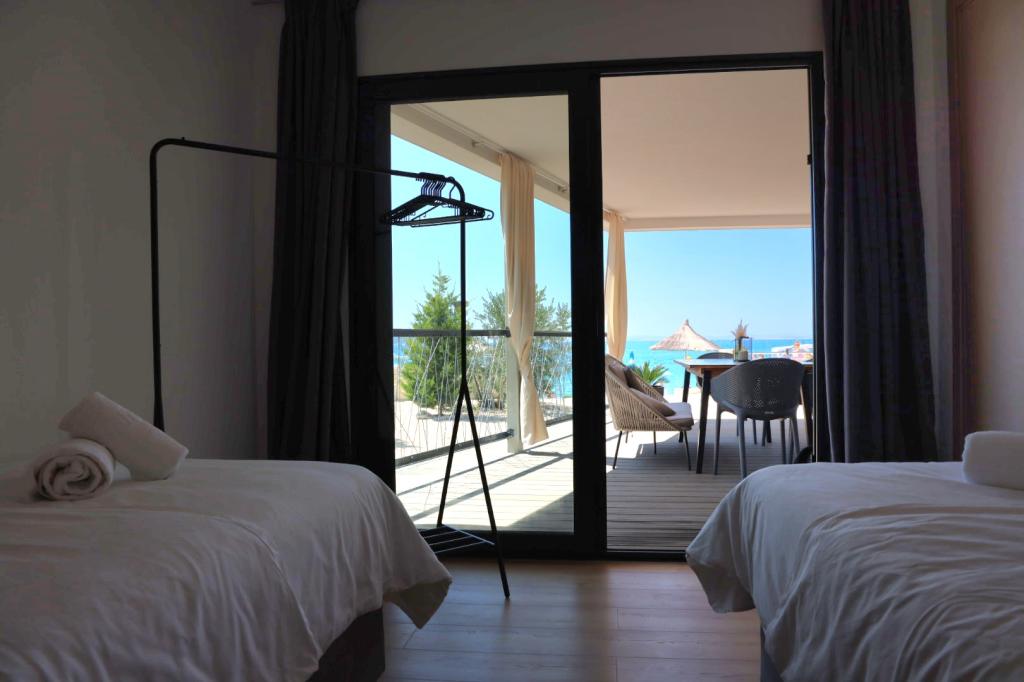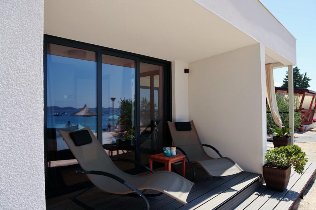 Il y a des mobil-homes à louer sur la belle plage. Les maisons sont modernes et luxueusement décorées, elles se composent d'une grande chambre avec une salle de bain, une chambre, une cuisine, un séjour et une salle de bain, et d'une terrasse de 20 m2 avec une belle vue sur la mer et les îles voisines. Les mobil-homes sont climatisés, disposent de TV et internet. La cuisine est entièrement équipée et comprend : four électrique, lave-vaisselle, machine à café, lave-linge, grand réfrigérateur, bouilloire, vaisselle... Le linge de lit et les serviettes sont inclus. Les maisons sont situées dans un quartier calme de la ville et à 5 minutes à pied du centre.