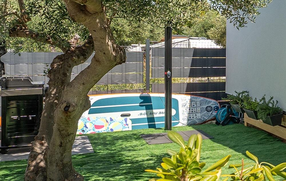 Les hôtes ont à leur disposition un lave-linge, un lave-vaisselle, la climatisation, un réfrigérateur extérieur et un réfrigérateur intérieur, un ventilateur sur la terrasse, une télévision dans le salon et sur la terrasse. La maison comprend deux chambres avec des lits de 160 cm de large. Les lits sont équipés de matelas de qualité, de surmatelas et de draps en satin. Un canapé-lit est disponible dans le salon pour une personne supplémentaire. La cuisine est entièrement équipée en vaisselle et appareils électroménagers : cafetière, four, micro-ondes, grille-pain… Dans le jardin, les hôtes ont accès à un barbecue, des transats et deux planches de SUP. La maison bénéficie d’une connexion internet haut débit StarLink.
