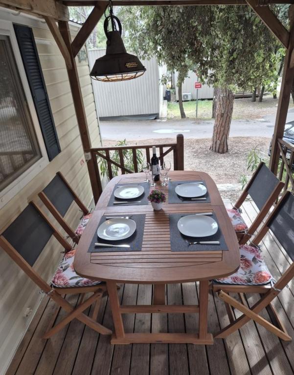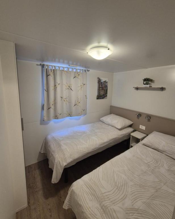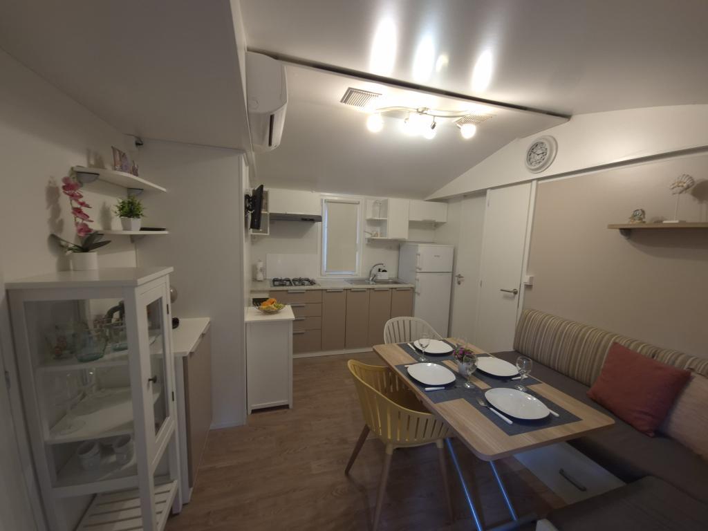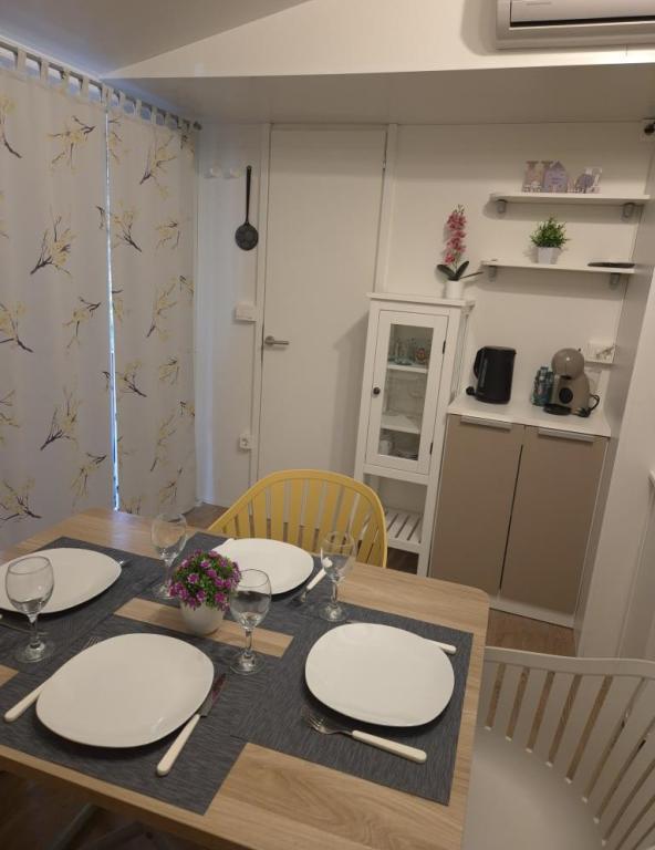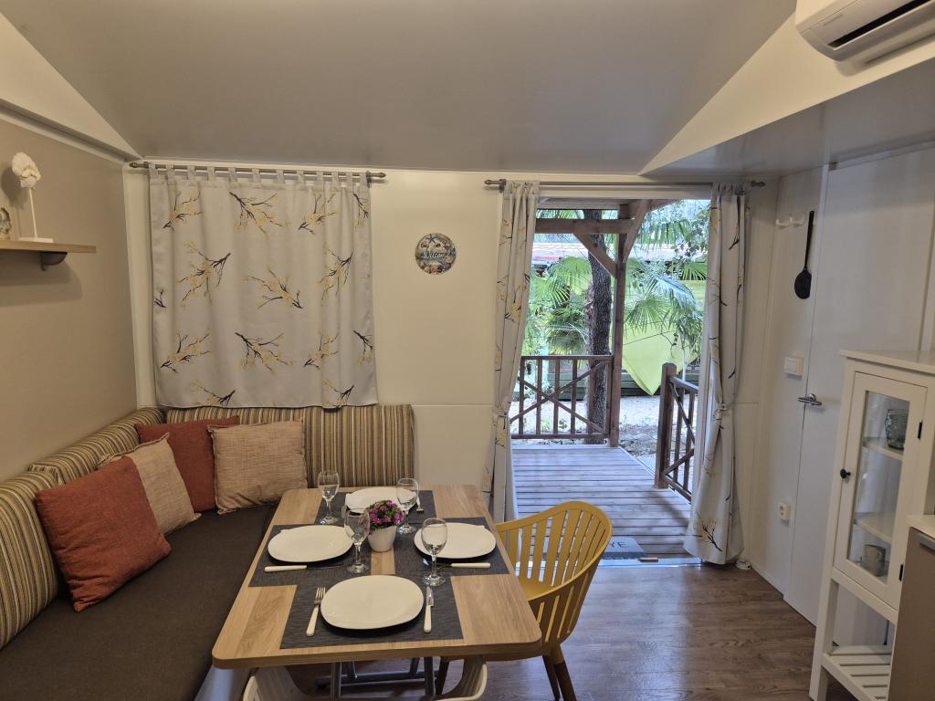 Hébergement confortable : Le mobil-home Glamour Pakoštane, situé à Pakoštane, propose deux chambres, deux salles de bains et un salon spacieux. Il comprend une cuisine entièrement équipée, la climatisation et une connexion Wi-Fi gratuite. Loisirs : Vous pourrez profiter de la terrasse, du bar et de la pataugeoire. Un espace repas, du mobilier de jardin et un parking privé gratuit sont également à votre disposition. Situation idéale : Le camping se trouve à 27 km de l'aéroport de Zadar et à quelques pas de la plage de Punta. La marina de Kornati et le musée du patrimoine de Biograd sont à 8 km. La voile est possible dans les environs.