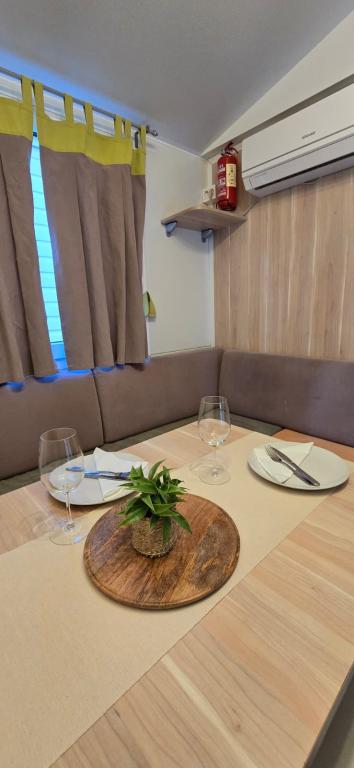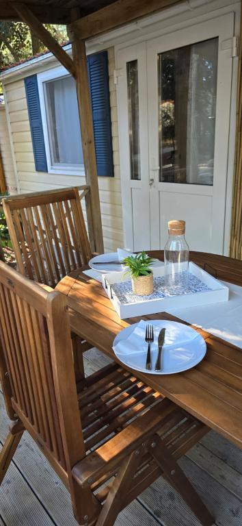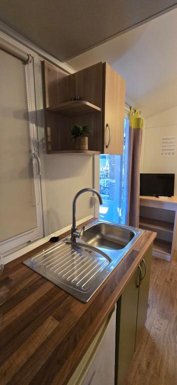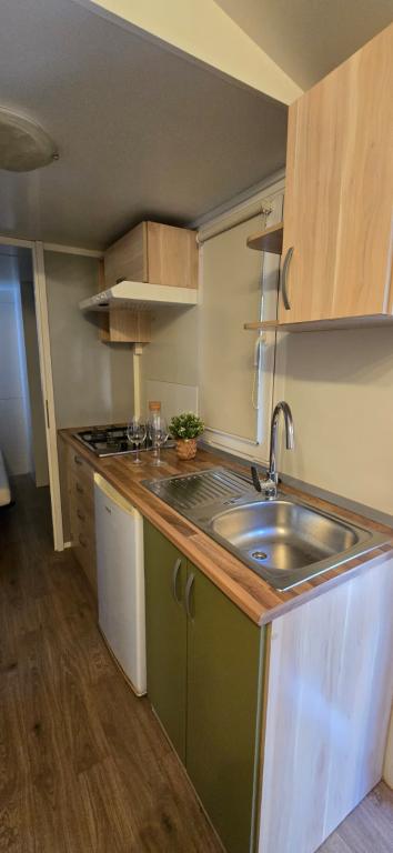 Taxe de sejour n'est pas incluse dans le prix.Au camping, les clients profitent d'un supermarché, d'un café, d'un restaurant, d'aires de jeux pour enfants, d'un club enfants, d'un centre de bien-être et de diverses installations sportives. La réception est ouverte 24h/24 et 7j/7. La location d'un SUP est incluse avec chaque mobil-home, et dans le salon commun (7 jours sur 7), un kayak est mis à disposition gratuitement pour chaque location.