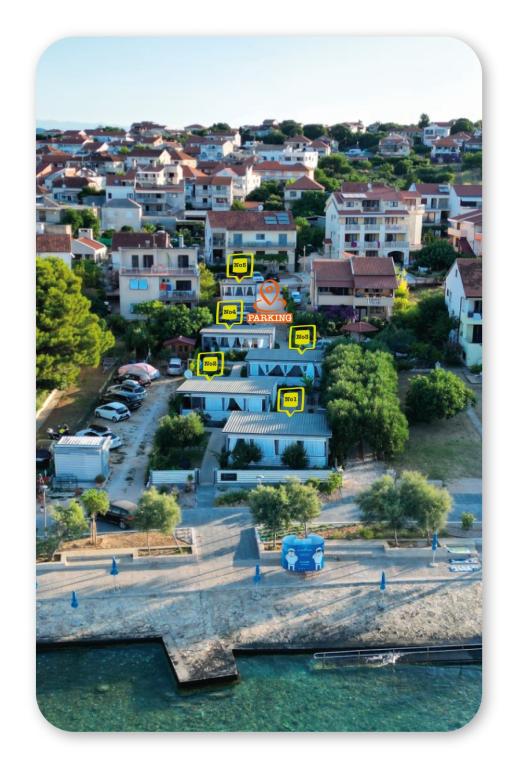 Nos mobil-homes sont situés en plein centre de Pakoštane, juste à côté de la plage principale de sable fin, avec vue imprenable sur la mer. Chaque mobil-home comprend deux chambres, un séjour, une cuisine, des toilettes et une grande terrasse (5). Nous proposons également un mobil-home plus petit (2) avec une chambre, des toilettes, un séjour/cuisine attenant et une terrasse. Un barbecue est à la disposition de chaque hôte. Une place de parking est réservée aux hôtes. Les animaux de compagnie sont acceptés moyennant un supplément de 7 € par nuit et par animal. Nous disposons d'un amarrage pour bateaux et d'un parking pour remorques, accessibles aux hôtes moyennant un supplément.