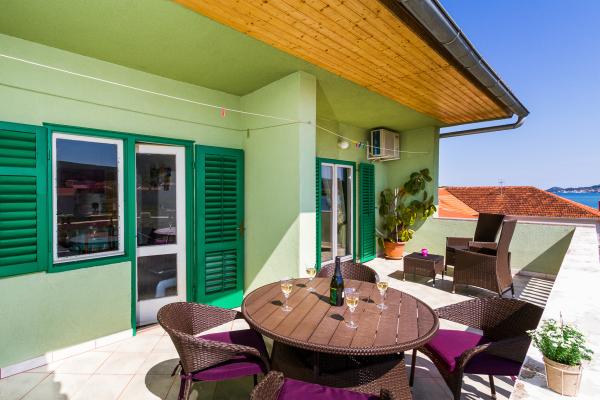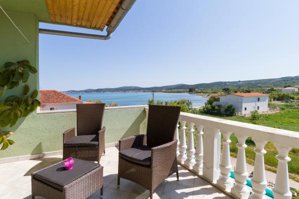 Nous sommes au premier rang face à la mer. Idéal pour des vacances en famille. La plage de sable est à 20 m de l'appartement. Le centre-ville est à seulement 200 m. Les appartements sont situés dans une maison familiale, sur deux étages. Le prix comprend le Wi-Fi gratuit, le parking gratuit, la climatisation et un barbecue extérieur. A5 - situé au 2e étage. Il comprend une chambre avec un lit double (180-200 cm) et deux lits simples, des toilettes, un salon séparé avec un canapé-lit, une télévision LCD et une cuisine neuve. L'appartement dispose d'une immense terrasse donnant sur le canal de Pašman. Il est climatisé. A4 1 - situé au 1er étage. Il comprend une chambre avec un lit double (180-200 cm) et un canapé-lit, un salon séparé avec un canapé-lit d'angle pour deux personnes, une télévision LCD, des toilettes et une cuisine. Chaque chambre dispose de son propre balcon avec vue sur la mer. Il est climatisé.