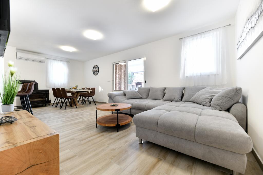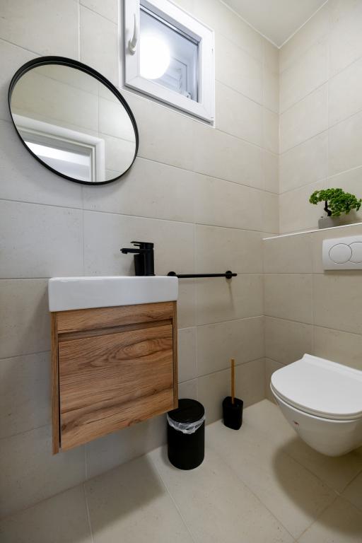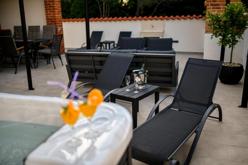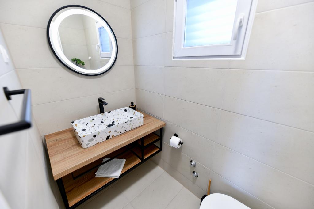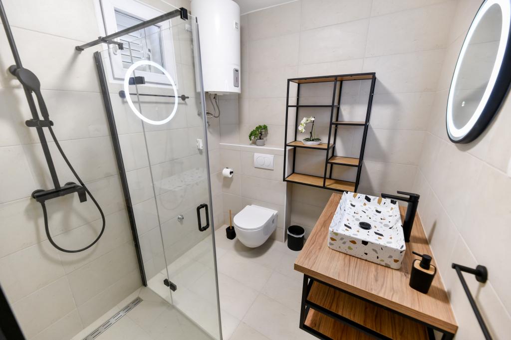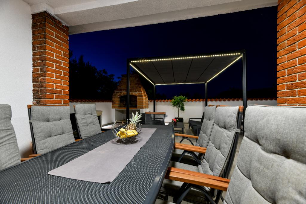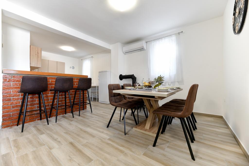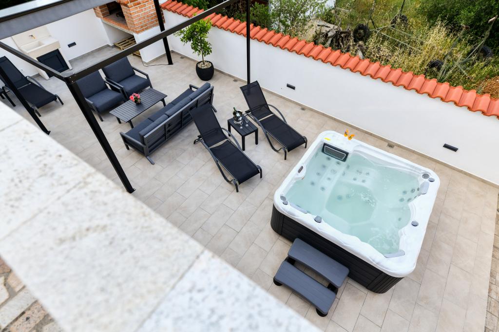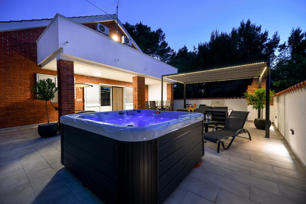 La maison est située sur l'île de Pašman, dans une oasis de paix, de silence et de beauté d'une petite ville dalmate typique. Trois minutes à pied de la plage, cinq minutes du magasin. L'établissement dispose d'une grande terrasse extérieure, d'un barbecue, de transats, d'une balançoire pour se reposer et d'une baignoire d'hydromassage. Au rez-de-chaussée il y a un grand séjour avec une cuisine, deux salles de bain et trois toilettes, et une machine à laver. Il y a 4 chambres au premier étage, deux chambres ont accès à une grande terrasse avec vue sur la mer, un lit double de 180x200, et les deux autres chambres ont un lit double de 160x200, et une vue sur la forêt. Il y a aussi une toilette au premier étage. Un lit bébé est disponible sur demande. Il y a trois places de stationnement dans la cour, ainsi que la possibilité d'utiliser une douche extérieure. La maison a été entièrement rénovée en mai 2023. Un séjour de 10 personnes est également possible, auquel cas l'hébergement est prévu pour deux personnes dans un studio sur la même parcelle, moyennant un supplément. Le studio dispose d'une cuisine avec tous les appareils, d'une salle de bain avec douche, d'une télévision, de la climatisation et d'une terrasse avec vue sur la mer.