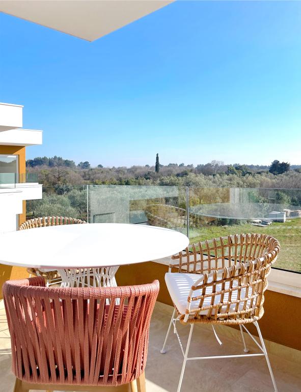 Appartements modernes et bien équipés dans un immeuble neuf situé dans une rue calme. Les deux appartements se trouvent au deuxième étage d'un immeuble de deux étages. Ils comprennent une cuisine avec coin repas, un salon, une salle de bains et une chambre. Entièrement meublés et équipés, ils vous garantissent un séjour agréable. Chaque appartement dispose d'une terrasse couverte avec table et chaises. De la terrasse, vous profiterez d'une vue sur la mer et jusqu'à Brijuni. La terrasse de l'appartement vert offre également une vue sur les oliveraies. L'appartement bleu donne sur la rue, tandis que l'appartement vert donne sur la cour intérieure. Le centre de Peroj, où se trouvent l'église, une boulangerie, un marchand de fruits et une petite épicerie, est facilement accessible à pied en 5 à 10 minutes. En été, un marché de poissons frais est organisé sur la place. La plage de Martuline est à environ 20 minutes à pied ou 3 minutes en voiture. Le stationnement est gratuit sur la plage. À seulement 2 km se trouve Fažana, d'où part un bateau pour Brijuni, et où l'on trouve des cafés, des restaurants et d'autres lieux de divertissement.