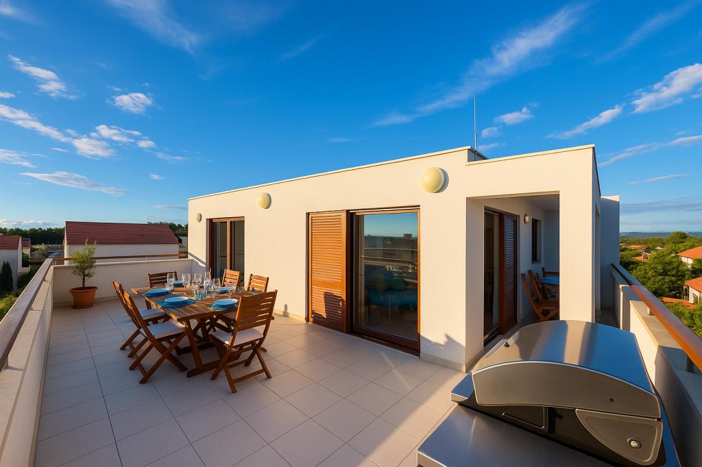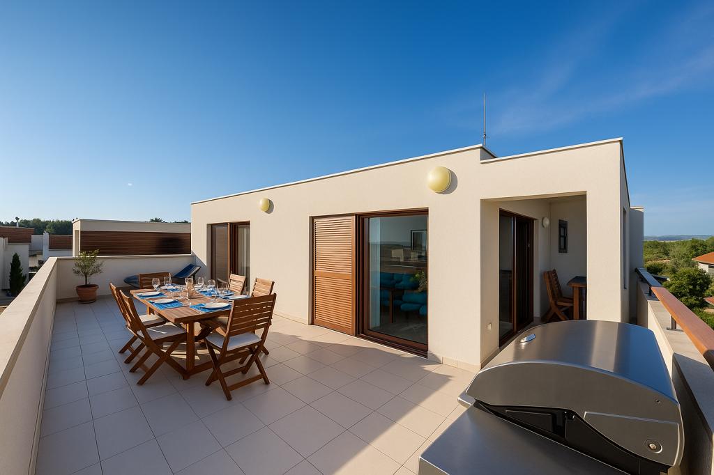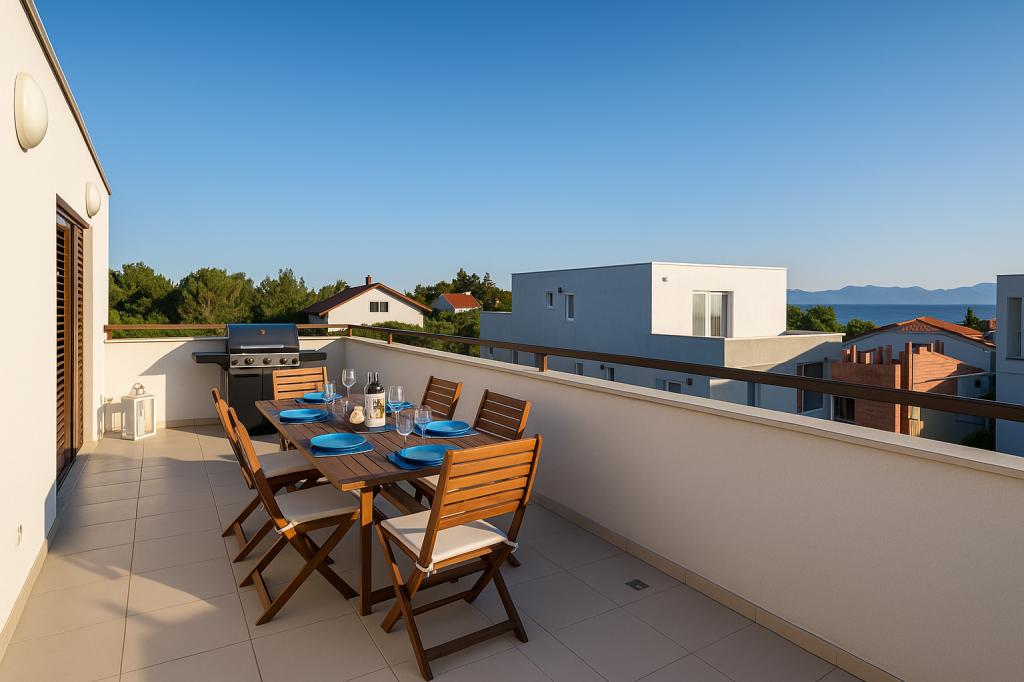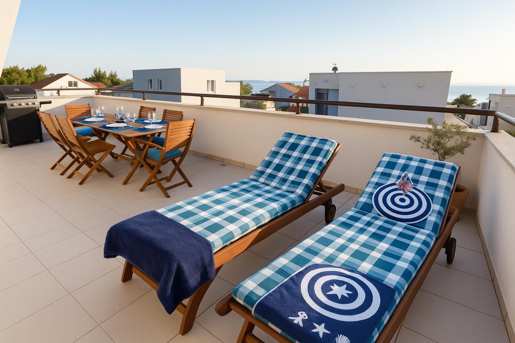 Doté d'un barbecue et d'une terrasse, l'Aquamarine Deluxe Penthouse Apartment est situé à Petrčani, à 250 mètres de la plage de Punta Radman, à 350 mètres de la plage de Pinija et à 200 mètres de l'arrêt de bus de Petrčane. Cet établissement climatisé est situé à 150 mètres de la plage de Pineta et comprend une connexion Wi-Fi et un parking privé gratuits. L'appartement dispose de 3 chambres, 1 salle de bain, linge de lit, serviettes, télévision à écran plat avec chaînes satellite, salle à manger, cuisine entièrement équipée et balcon avec vue mer. L'aéroport le plus proche, celui de Zadar, est à 23 km et l'appartement organise le transport depuis/vers l'aéroport moyennant un supplément.