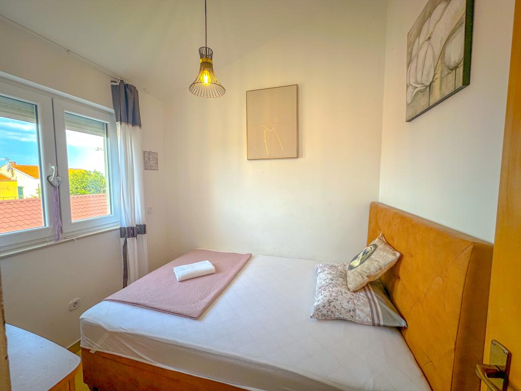 L'APPARTEMENT SARA - PUNTA SKALA / PETRČANE est neuf et joliment décoré et se compose d'un hall d'entrée, de deux chambres, d'un séjour avec cuisine, d'une salle de bain et d'un balcon avec vue sur la mer. L'appartement est au 1er étage de l'immeuble. L'APPARTEMENT MARINA-PUNTA SKALA/PETRČANE est un appartement confortable au rez-de-chaussée de l'immeuble, composé d'un hall d'entrée, de deux chambres, d'un séjour avec cuisine, d'une salle de bains et d'un balcon. Les deux appartements sont entièrement équipés pour un séjour agréable.Un parking est disponible. Le magasin, le restaurant, la boulangerie et la pâtisserie les plus proches sont à environ 100 m de l'appartement. La plage avec piscines est à environ 200 mètres de l'appartement et il y a beaucoup de verdure, vous pouvez donc toujours trouver de l'ombre qui vous permet de rester plus longtemps sur la plage. Il y a une longue promenade en bord de mer que vous pouvez emprunter pour rejoindre Petrčane. Les appartements sont à 12 km de la ville de Zadar et à 3 km de la ville historique de Nin. Les appartements Sara et Marina sont idéaux pour des vacances tranquilles en famille, mais ils offrent également des possibilités d'excursions et de sorties. Nous nous réjouissons de votre arrivée !