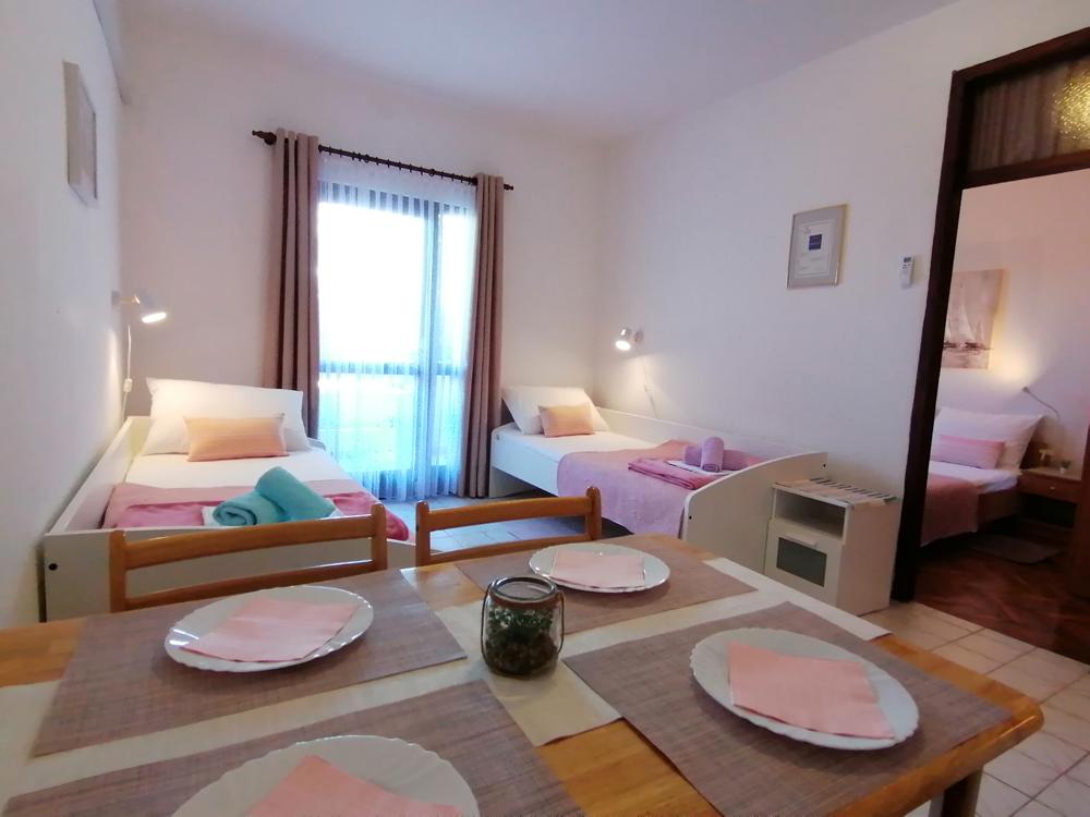 Ces dernières années, nous avons séjourné dans différents appartements en Croatie au bord de la mer et nous devons admettre que les appartements Adria sont jusqu'à présent parmi les meilleurs. Tout était soigné et propre. A notre arrivée, nous avons été accueillis avec une boisson fraîche de bienvenue. La cuisine est entièrement équipée avec tout ce dont vous avez besoin, des torchons et un jeu de serviettes pour chaque personne, qui sont changés deux fois par semaine. Le propriétaire de l'appartement était très gentil et toujours prêt à aider et à avoir une conversation agréable. Si nous revenons en vacances à Petrčani, nous choisirons certainement ces appartements.
