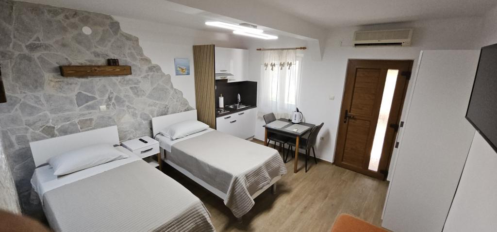 L'appartement est situé à environ 70 m de la mer, pas trop grand, mais pour deux personnes et un bébé assez. Je cherchais un appartement avec wi-fi, parking pour la voiture (dans mon cas une moto) et de la climatisation. Je les ai tous trouvé. Petrcane est un endroit parfait pour se déplacer et visiter des endroits comme la rivière Zrmanja, Nin, Zadar, les chutes d'eau et le parc national de Krka, le parc national de Plitvice, l'île de Pag, le Parc national de Velebit etc. La nuit, il ya un joli calme et vous dormez bien. Ici, voilà pourquoi je vais retourner l'an prochain. Nikola Kokanovic, Vittuone, Italie