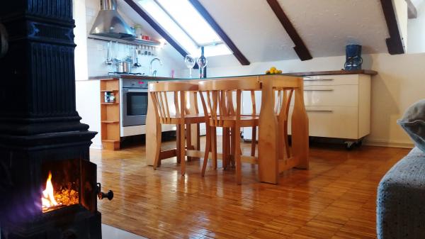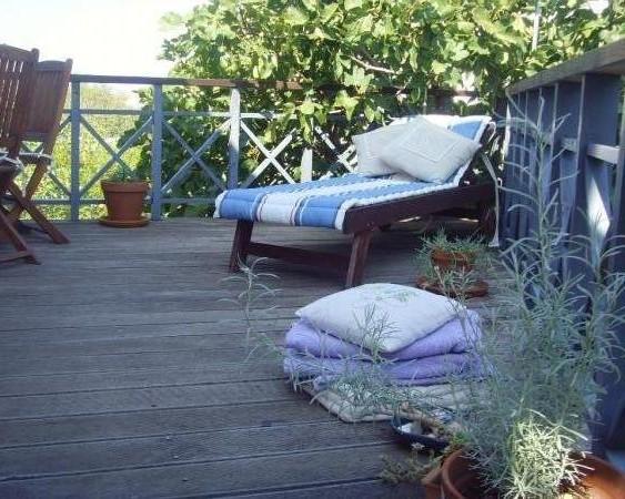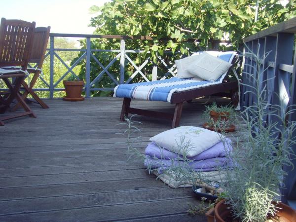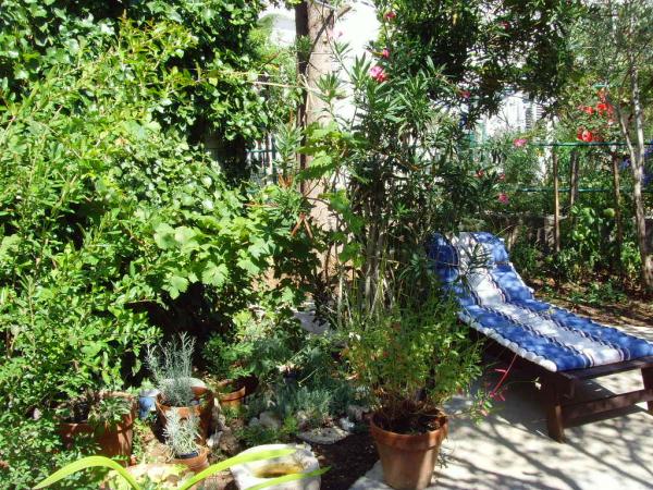 L'appartement Log Inn se situe au premier étage d'une maison de deux appartements seulement, dans une ruelle calme idéale pour les familles. Le jardin, ombragé par des oliviers, des figuiers et des pins, dispose d'une place de parking. Le centre-ville, avec ses commerces, boulangeries, pâtisseries, cafés et restaurants, est à 10 minutes à pied, et la première plage de galets à seulement 5-10 minutes. Spacieux et agréable en toute saison, le Log Inn comprend une chambre séparée avec un salon agrémenté de jouets et de livres d'images. Bien équipé (vaisselle, bouilloire, cafetière, télévision grand écran, Wi-Fi, climatisation), il invite à la détente au coin du feu lors des douces soirées printanières. La terrasse meublée est un lieu de repos idéal pour prendre le petit-déjeuner, bronzer ou profiter de la soirée. Le studio, plus petit et doté d'une kitchenette réduite, reste néanmoins agréable même en été grâce à son jardin. Les deux appartements sont climatisés et chauffés. Hors saison, elles sont louées avec des réductions et au mois.