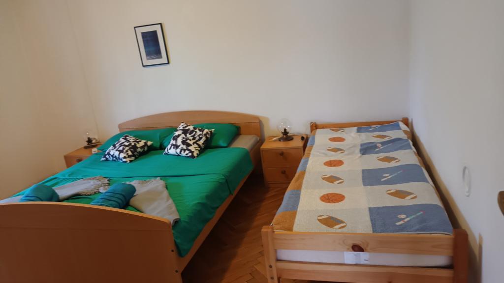 Appartement spacieux, au 1er étage, deux chambres, chacune avec trois lits (lit double et lit simple), cuisine, séjour, WC, salle de bains, balcon. Air conditionné dans les deux chambres, TV satellite, parking, grill, wifi, proche de la plage. Il est situé dans un quartier calme de Pirovac, à 5-10 minutes à pied du centre et à moins de 5 minutes de la plage Lolić.