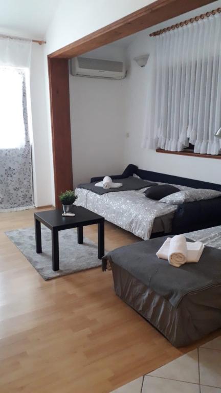 2 appartements à louer à Pirovac. Ils sont situés à proximité d'une belle pinède à environ 900m du centre et de la plage. Il n'y a pas de grande fluctuation de personnes, car seuls 2 appartements sont loués. Emplacement idéal pour ces temps. Chaque appartement a sa propre terrasse, air conditionné, TV, parking, internet, linge de lit et tout ce dont vous avez besoin pour des vacances. L'emplacement est calme et est un endroit idéal pour se détendre, et le centre est à dix minutes à pied