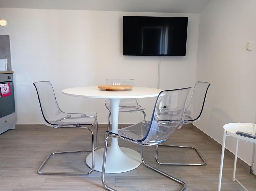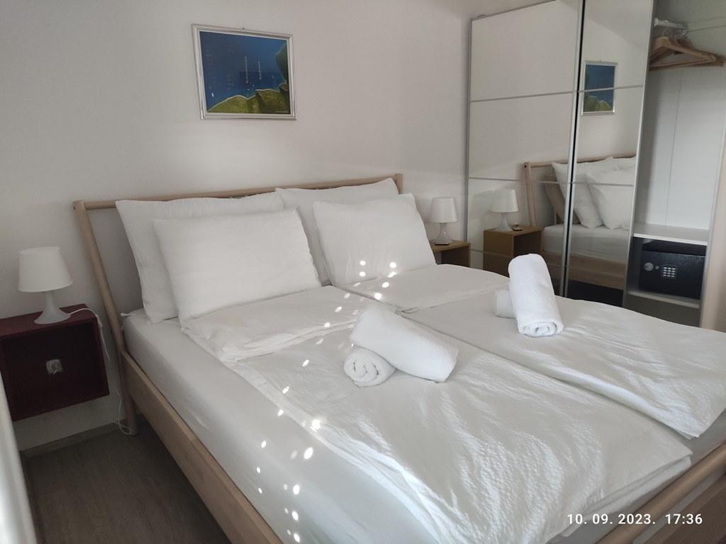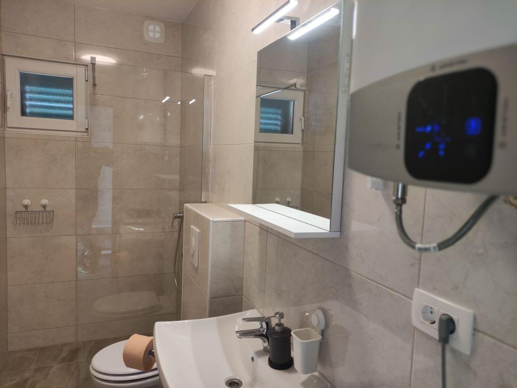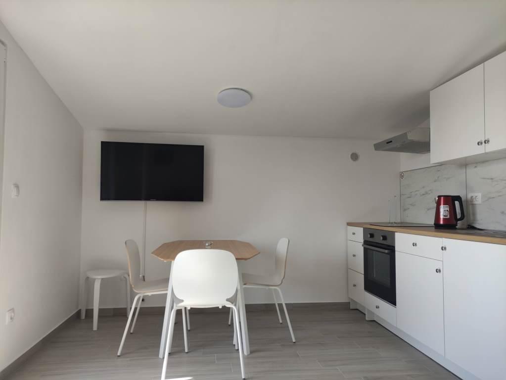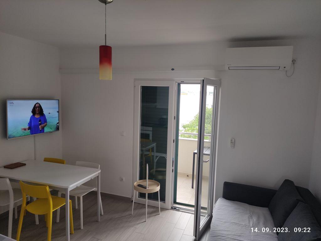 Les appartements NOUVELLEMENT RÉNOVÉS sont situés dans une maison familiale et sont situés dans une rue calme avec peu de circulation. L'emplacement de l'appartement est idéal étant donné qu'il ne faut que 4 minutes pour se rendre à la plage et que le centre est accessible encore plus rapidement, en seulement 2 minutes, et tout ce dont vous avez besoin pour passer d'agréables vacances est à portée de main. Chaque appartement a sa propre entrée séparée et un balcon avec une vue magnifique sur la mer et les environs avec des levers et couchers de soleil inoubliables. Les appartements ont un design contemporain, ils sont entièrement équipés pour rendre votre séjour le plus détendu possible. Nous sommes sûrs que vous aurez envie de revenir.