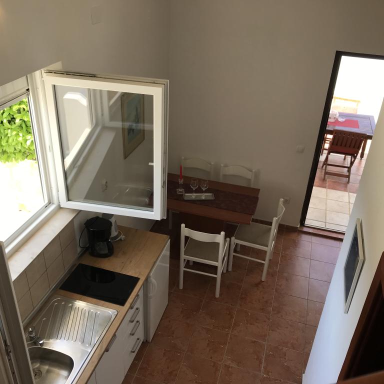 Les appartements sont situés à côté d'une forêt de pins et de la plage principale de Lolić. La plage principale se trouve à 50 mètres en face de la maison. Le centre de la ville est à quelques minutes à pied et dispose de toutes les installations nécessaires. L'espace et la simplicité de l'espace, plein de lumière et de soleil, avec vue sur la mer, depuis les grandes terrasses procurent une sensation d'énergie positive et de détente. Tous les appartements sont climatisés. Il y a deux appartements à chaque étage et chacun a sa propre entrée extérieure séparée. L'appartement pour quatre personnes dispose de deux chambres séparées (lits 160x200), d'un grand séjour avec cuisine et d'une salle de bain. Dans le séjour se trouve un canapé pouvant être transformé en lit (120x200) si besoin. Les appartements pour deux personnes disposent d'une chambre séparée (lit 160x200), d'un séjour avec cuisine et d'une salle de bain. Dans le séjour il y a un canapé lit pouvant servir de lit 120x200. Le studio est au rez-de-chaussée de la maison et comporte deux étages. Il y a une chambre au premier étage (lit 140x200). Au rez-de-chaussée il y a une cuisine, une salle de bain et une grande terrasse.