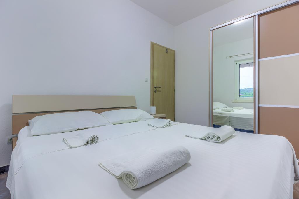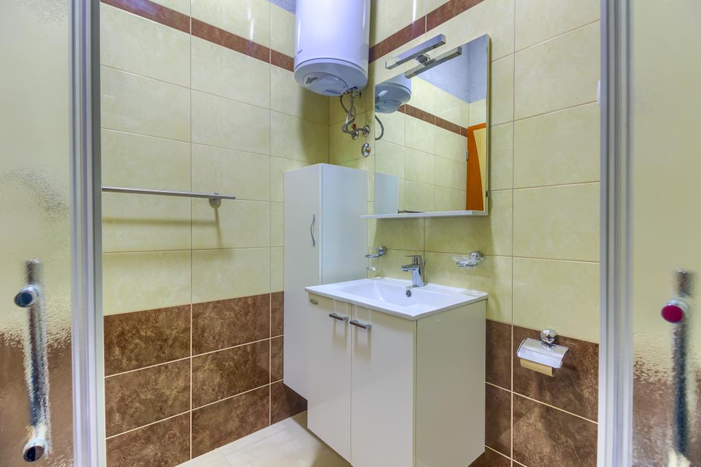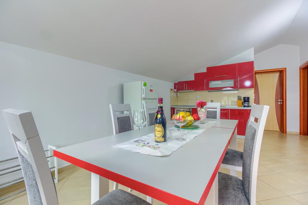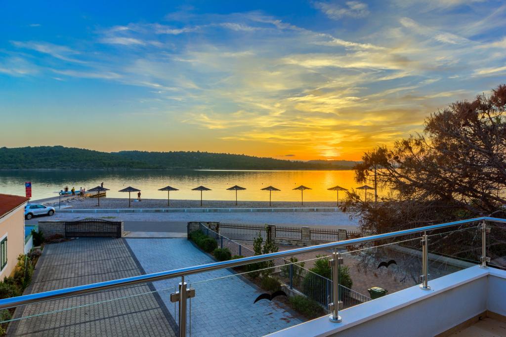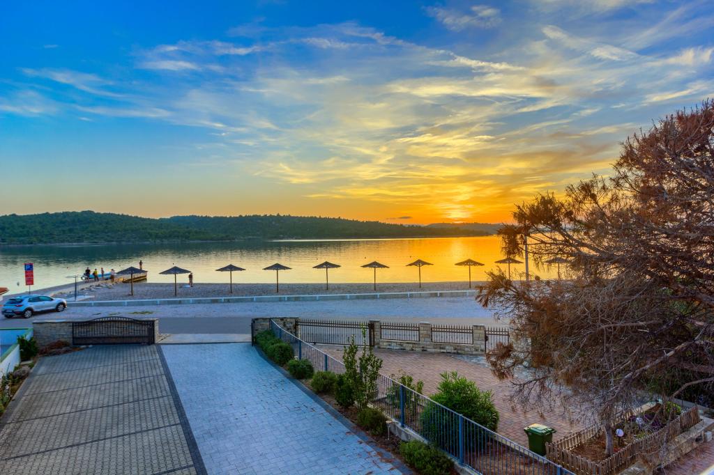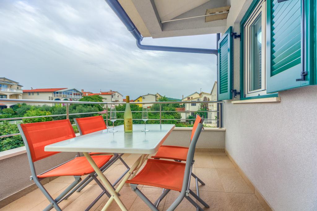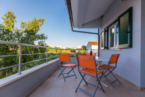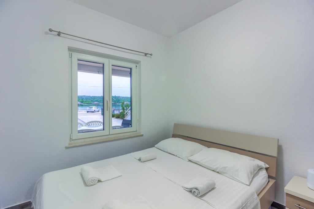 Neuf bel appartement avec terrasse et vue. Situé dans un quartier paisible et tranquille à quelques mètres de la mer. Le prix comprend: air conditionné, tv, wifi, parking privé, barbecue. .