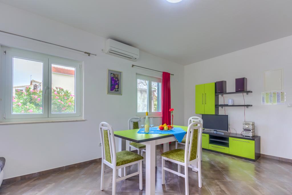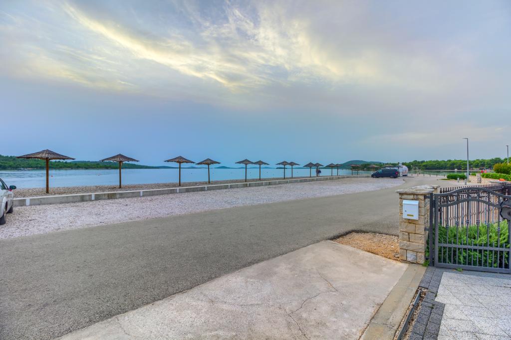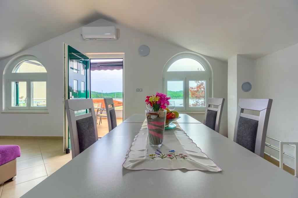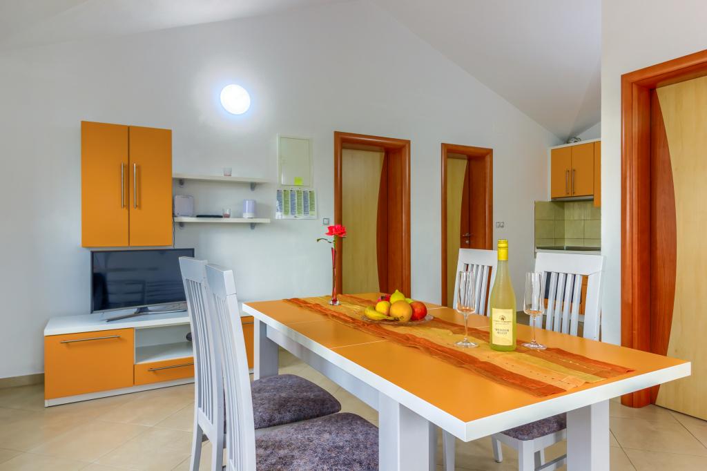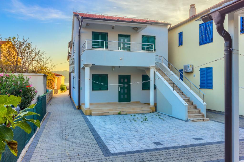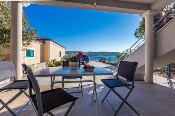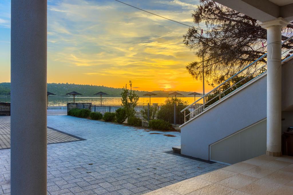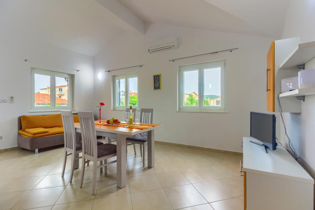 Neuf bel appartement avec terrasse et vue. Situé dans un quartier paisible et tranquille à quelques mètres de la mer. Le prix comprend: air conditionné, tv, wifi, parking privé, barbecue. .