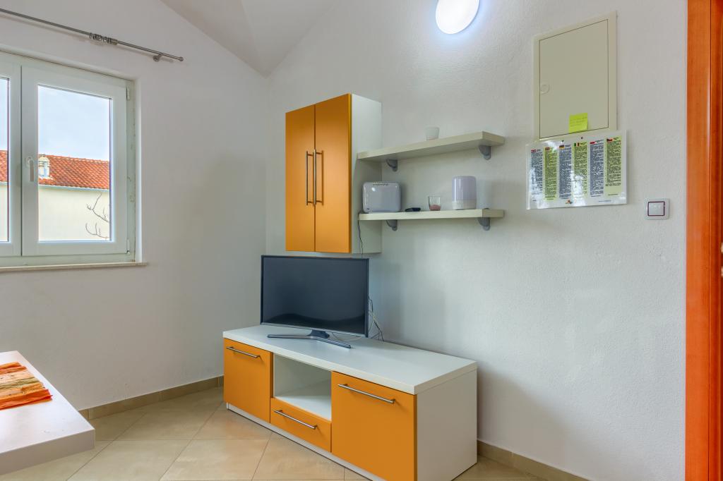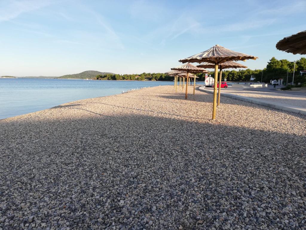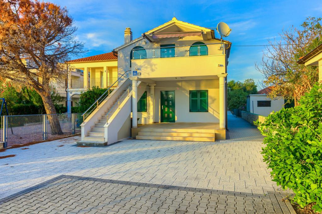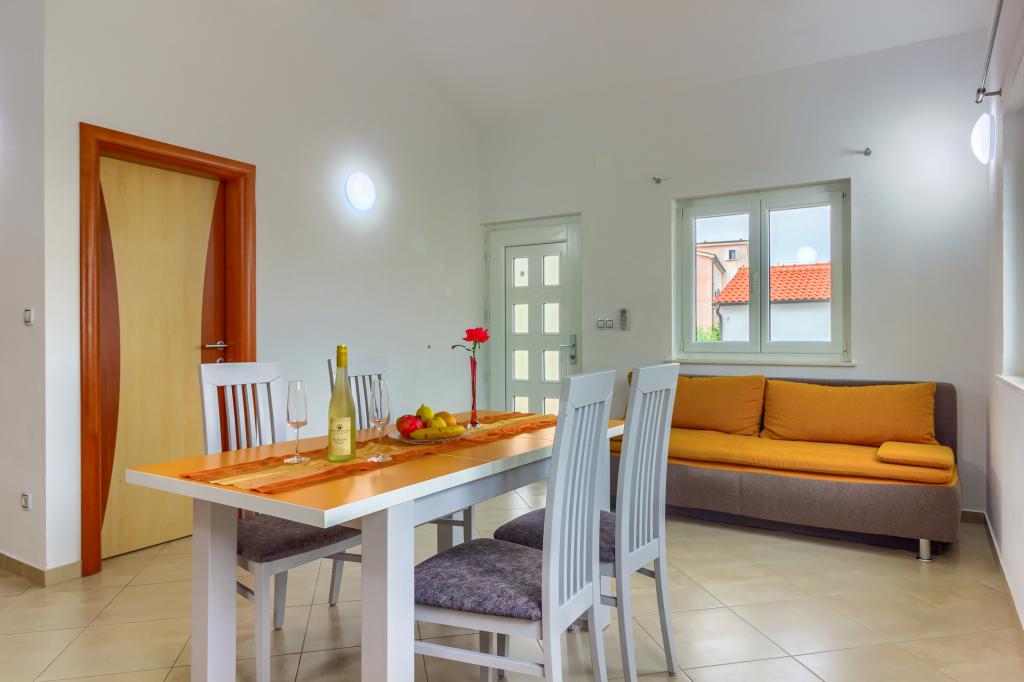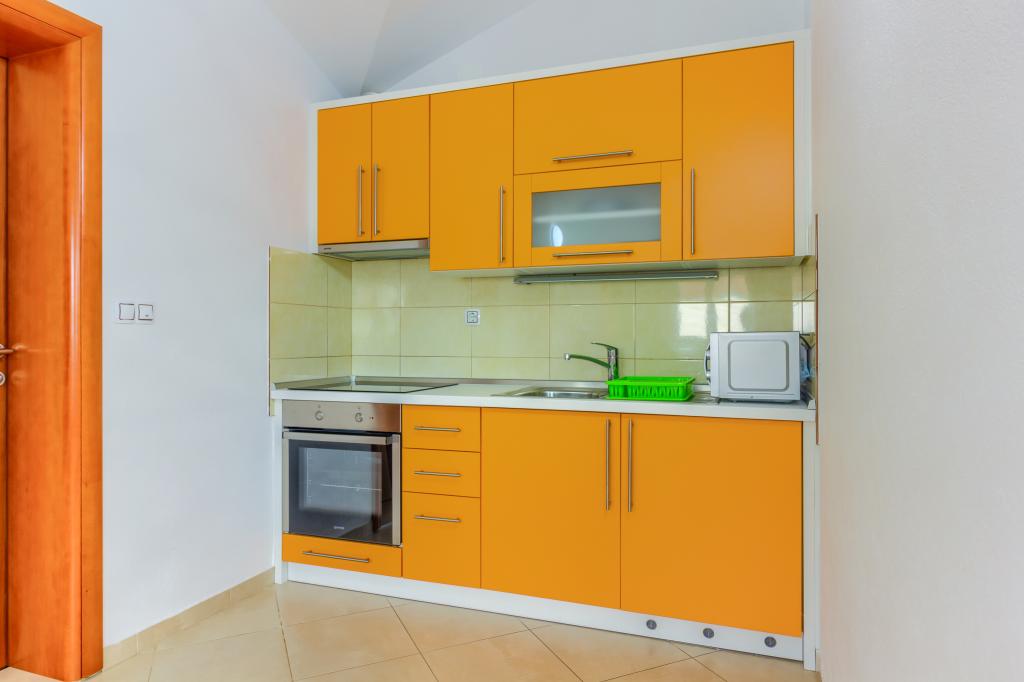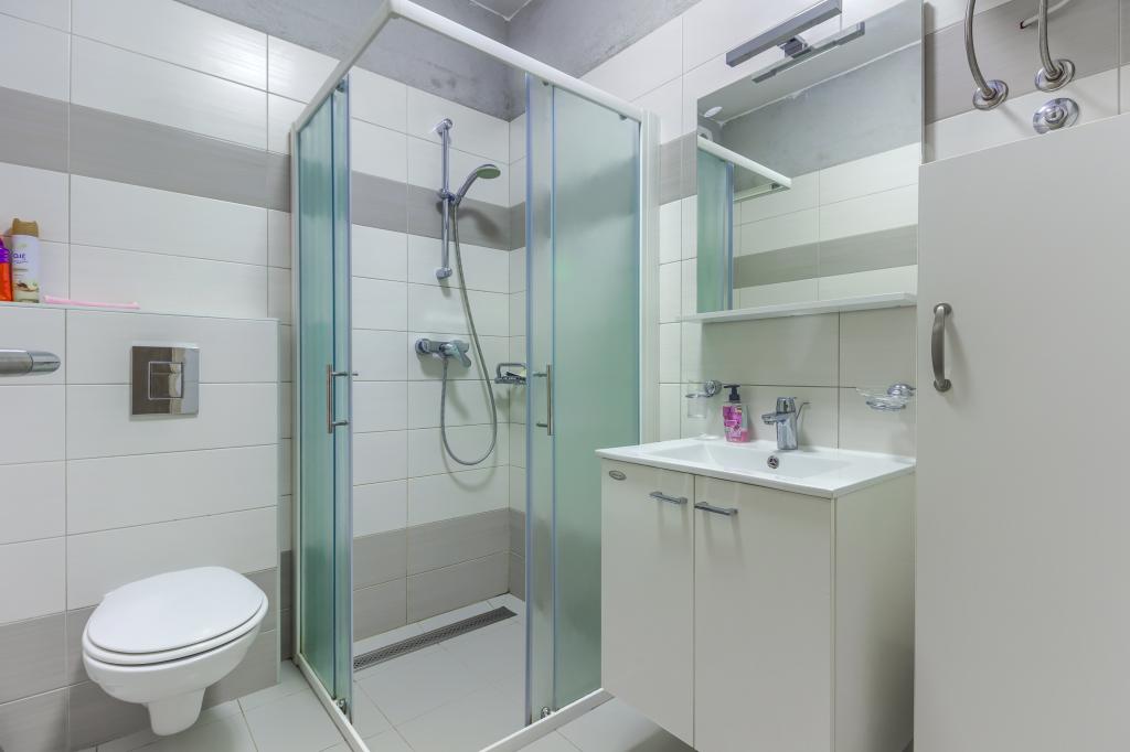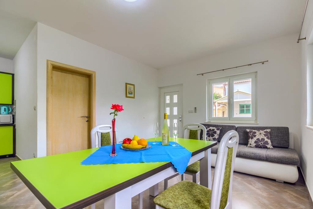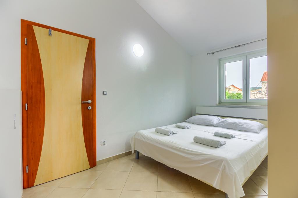 Neuf bel appartement avec terrasse et vue. Situé dans un quartier paisible et tranquille à quelques mètres de la mer. Le prix comprend: air conditionné, tv, wifi, parking privé, barbecue. .