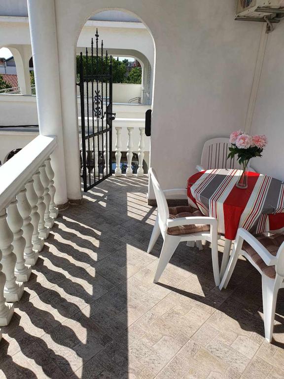 Les appartements PAVE sont situés dans une maison neuve et moderne. Propriété comprenant 2 appartements climatisés au premier étage. Les deux appartements sont entièrement équipés et meublés. Chaque appartement dispose d'une terrasse couverte, d'un séjour avec cuisine équipée avec canapé convertible, d'une salle de bain, d'une chambre et d'une douche extérieure. Les appartements sont situés dans le centre de Pirovac, à quelques minutes. à pied de la plage principale de Lolić, dans un endroit calme, loin de la circulation et du bruit. Il y a beaucoup d'ombre sur la plage, elle est donc idéale pour les familles avec de jeunes enfants. A moins de 100 m de l'appartement il y a un magasin, un marché, un marché aux poissons, un bureau de poste, un restaurant, un distributeur automatique de billets, une clinique, une pharmacie, des terrains de sport (football, basket-ball) et d'autres installations pour les enfants. Au fond de la baie de Pirovac se trouve une boue médicinale qui est efficace principalement pour traiter les maladies rhumatismales et autres, ainsi qu'à des fins cosmétiques. Il y a deux parcs nationaux près de Pirovac : le parc national de Kornati, le parc national de Krka et la réserve naturelle du lac Vrana.